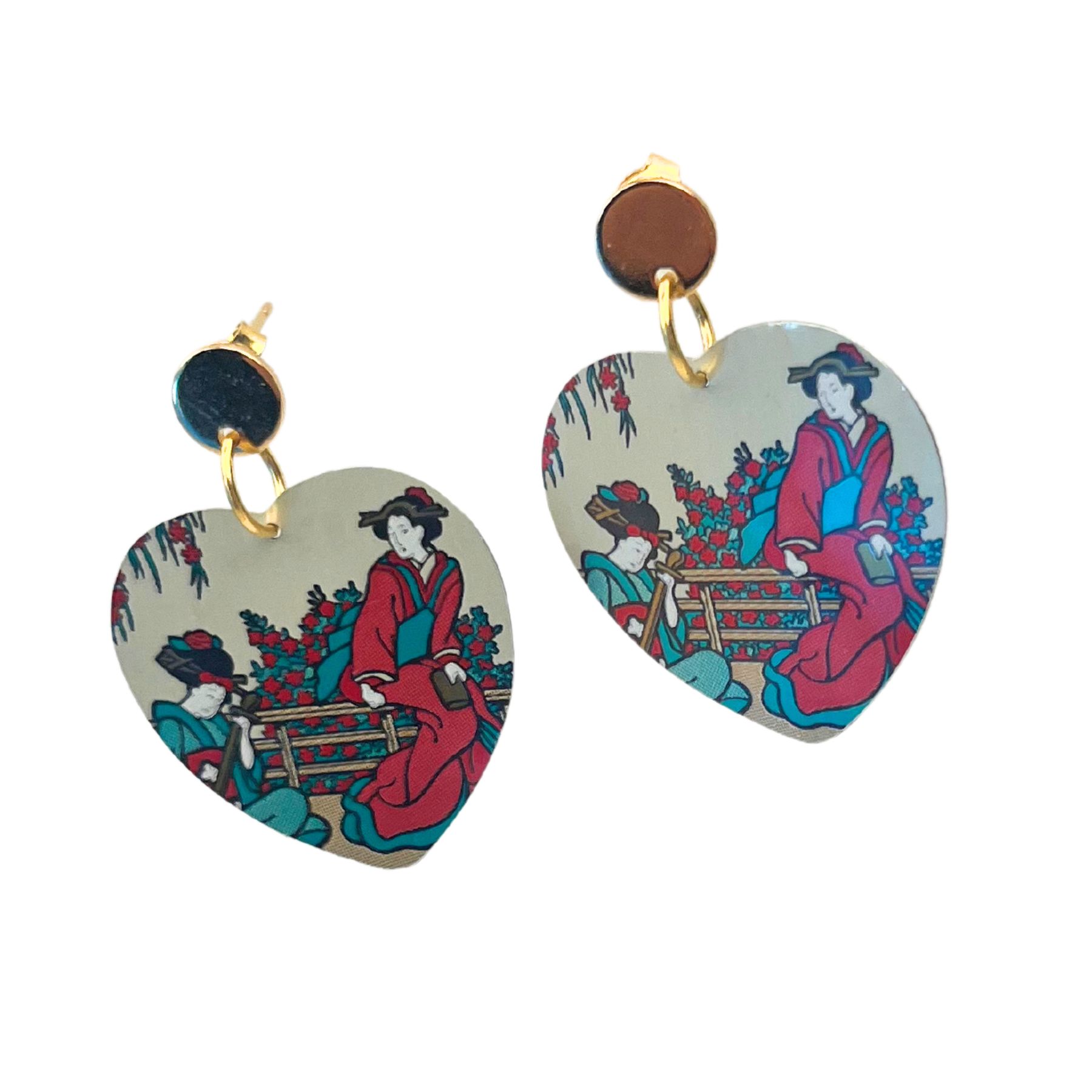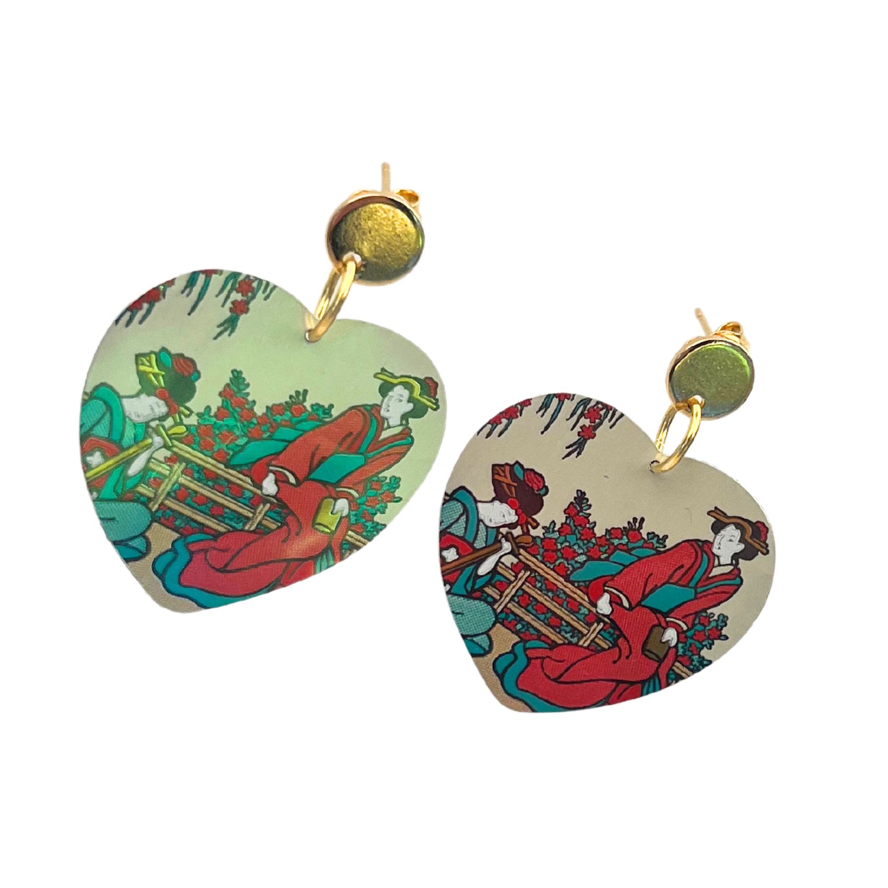 Boucles oreilles coeur Estampe en canette upcyclée : une touche d’originalité ajoutée à la beauté d’un design Japonisant.