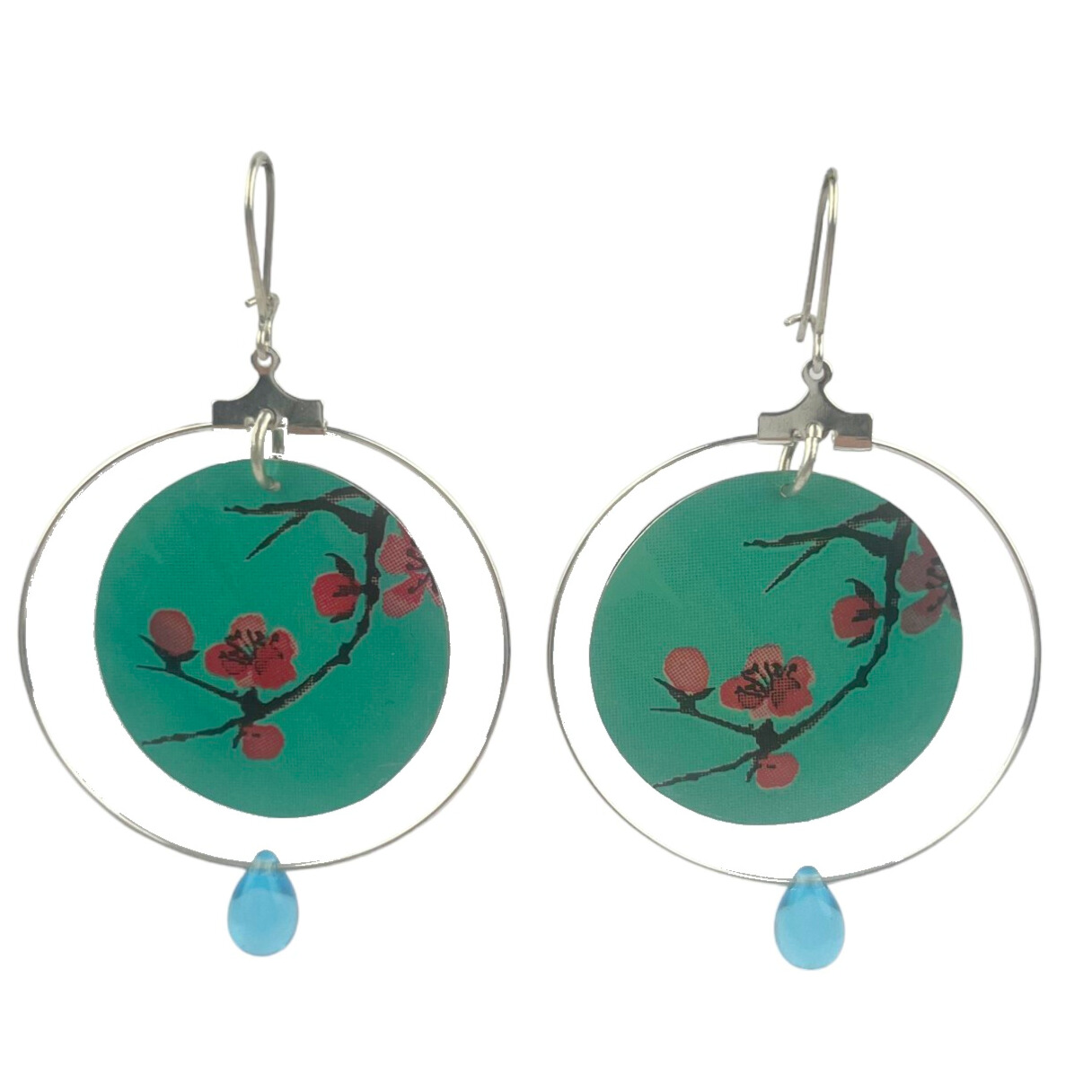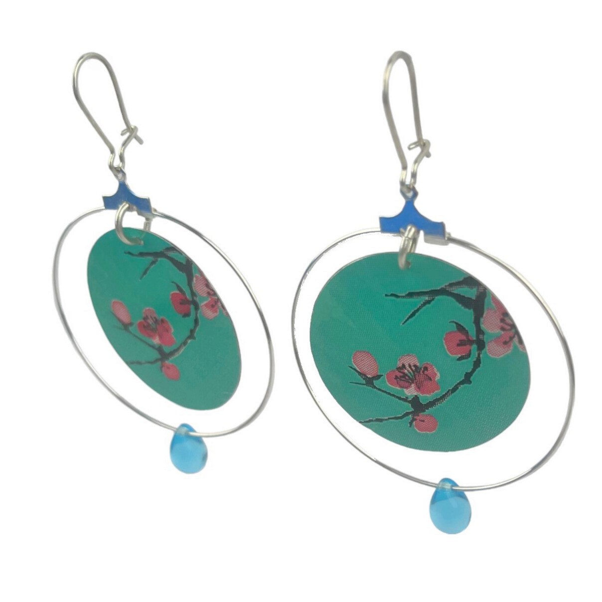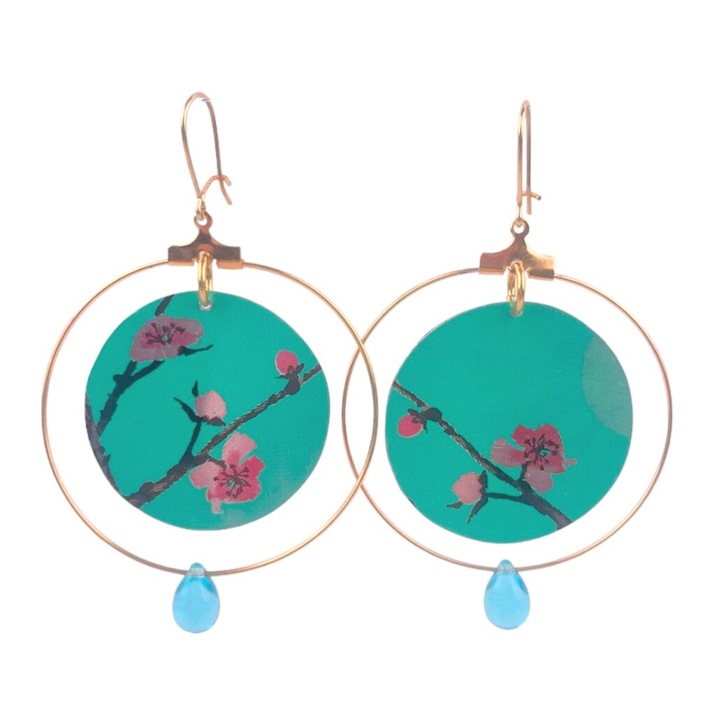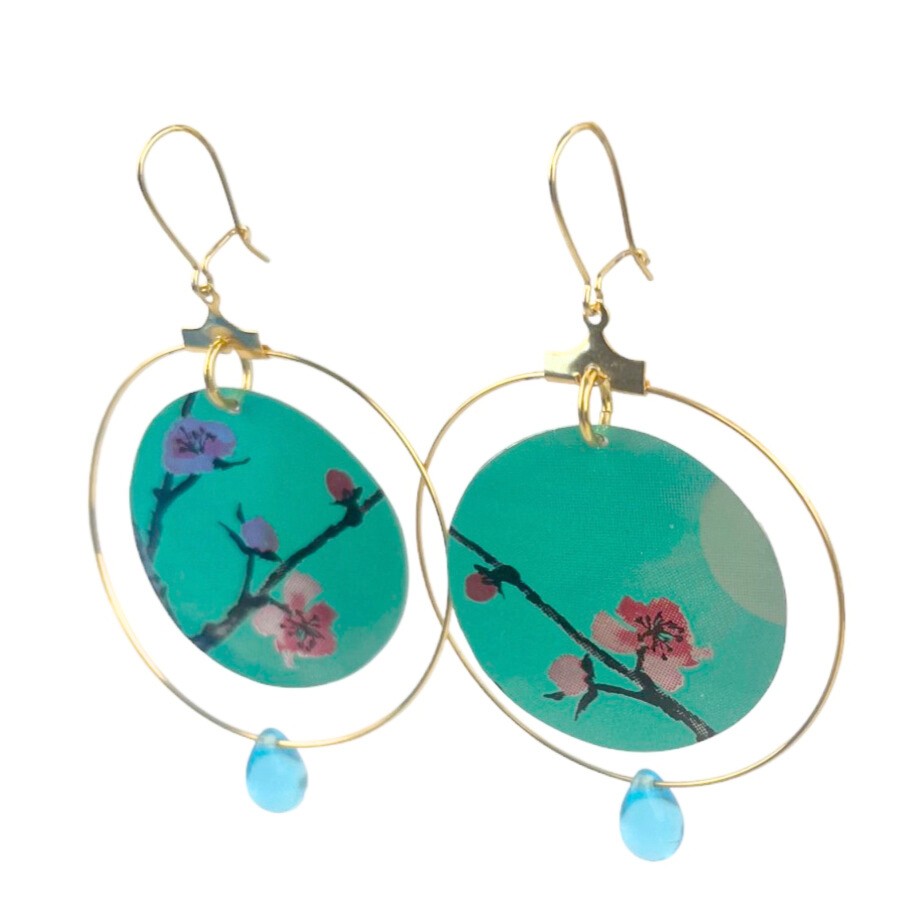 Boucles d’oreilles en canette upcyclée écoresponsable motif Fleur de cerisier version créole.