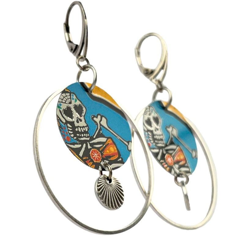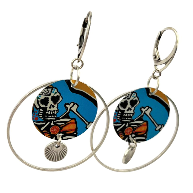 Boucles d’oreilles en canette upcyclée écoresponsable Dia des los muertos version créole.