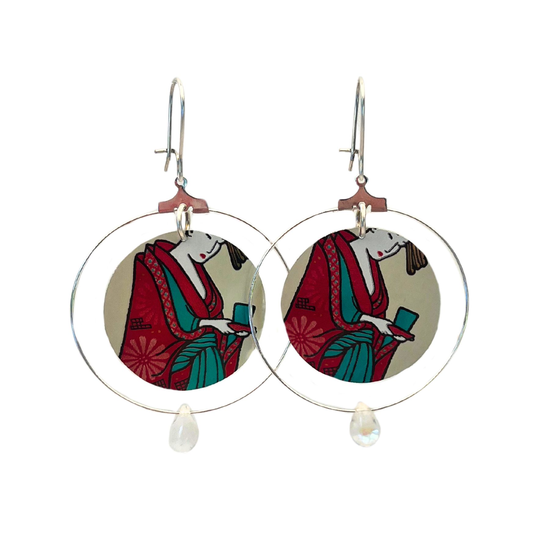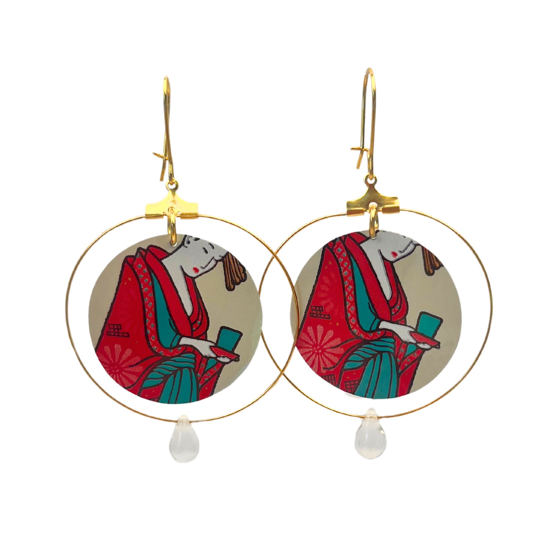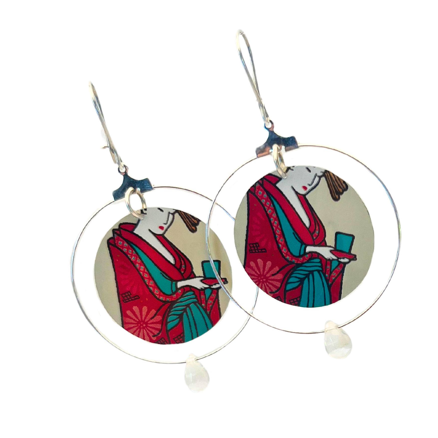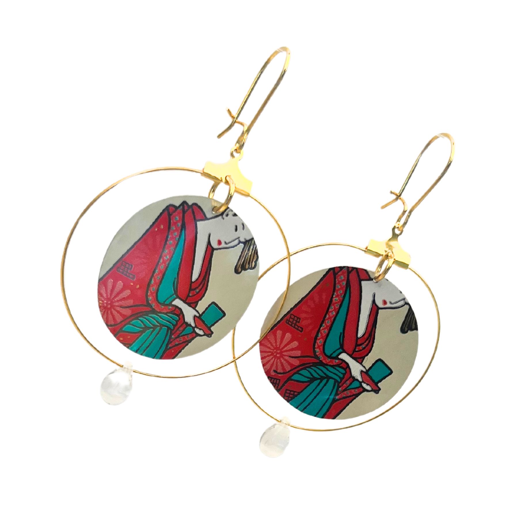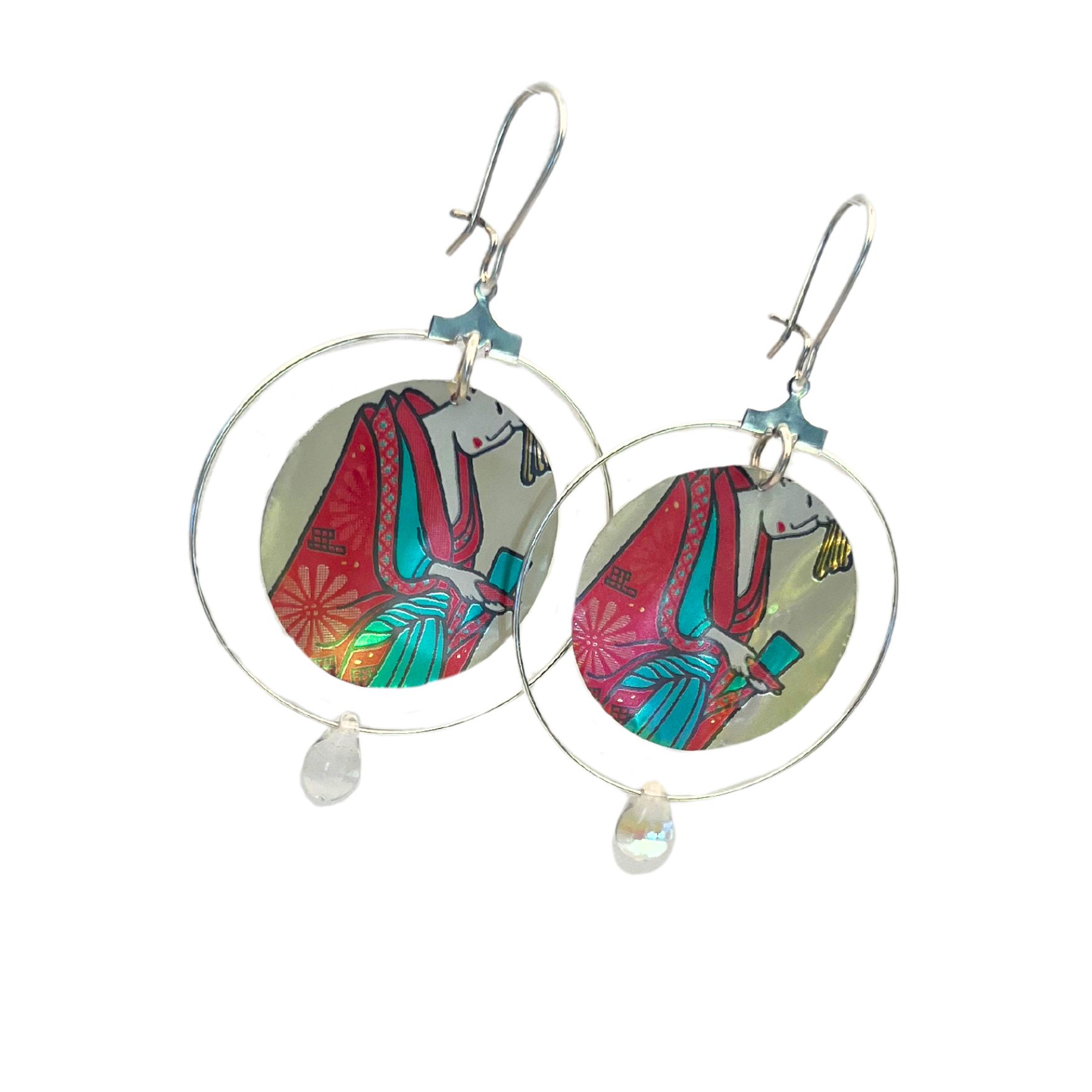 Boucles d’oreilles Estampe en canette upcyclée écoresponsable version créole issue d’une canette de la marque Arizona Green Tea.