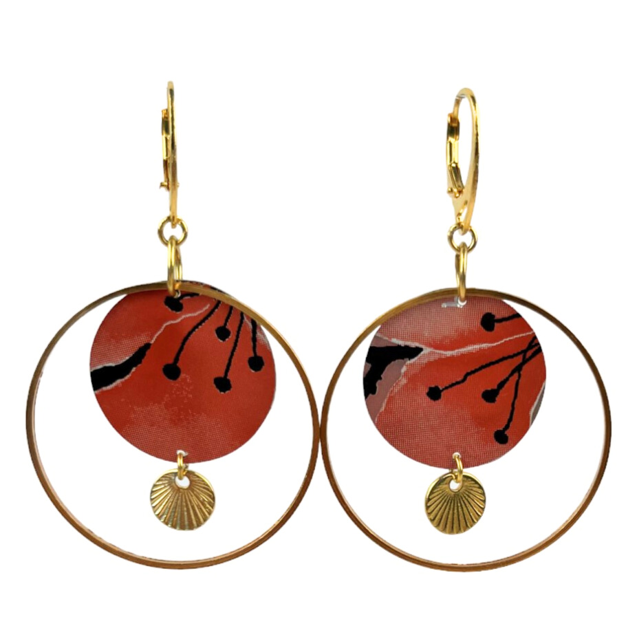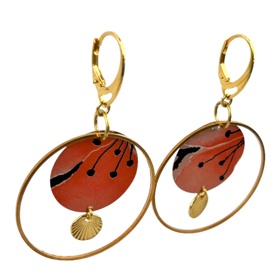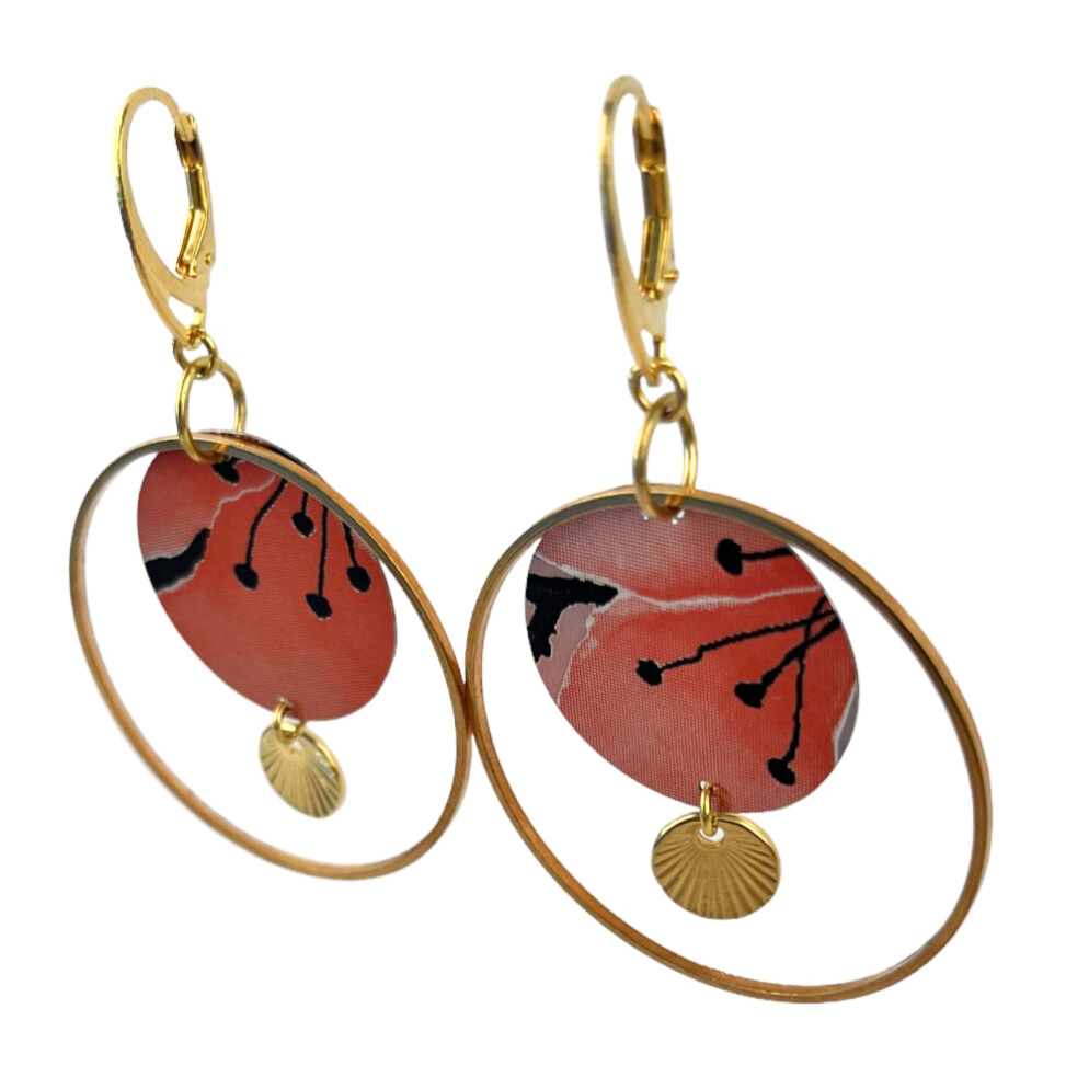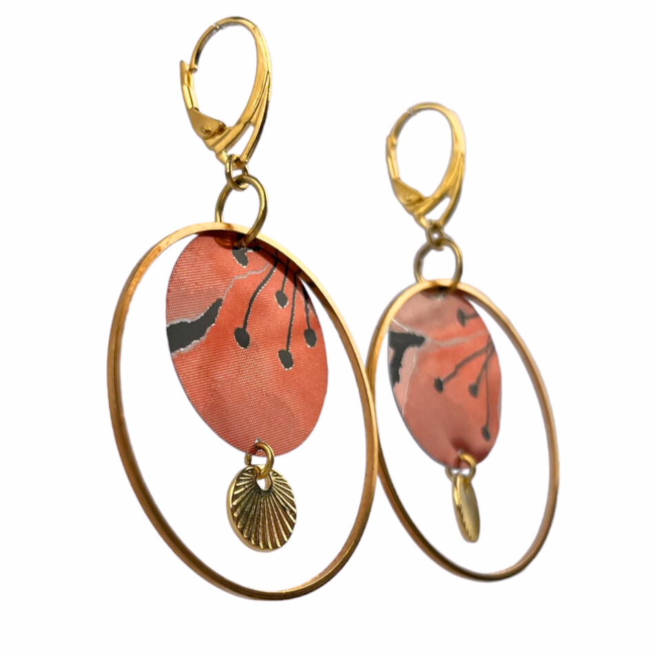 Boucles d’oreilles en canette upcyclée écoresponsable Fleur de pêcher version créole.