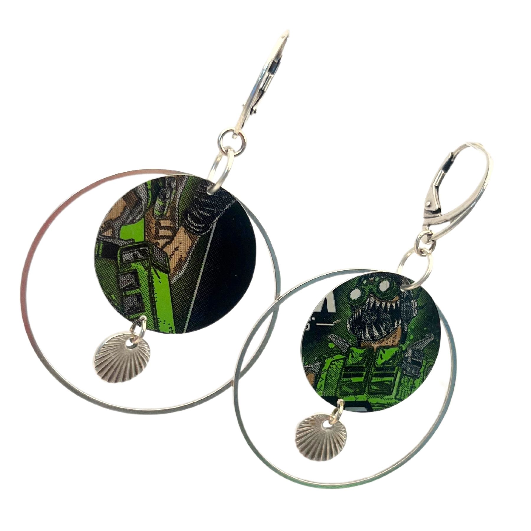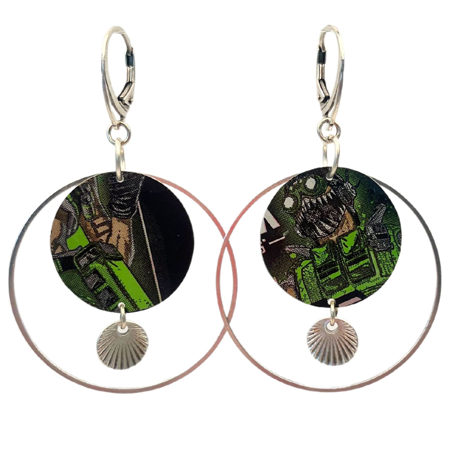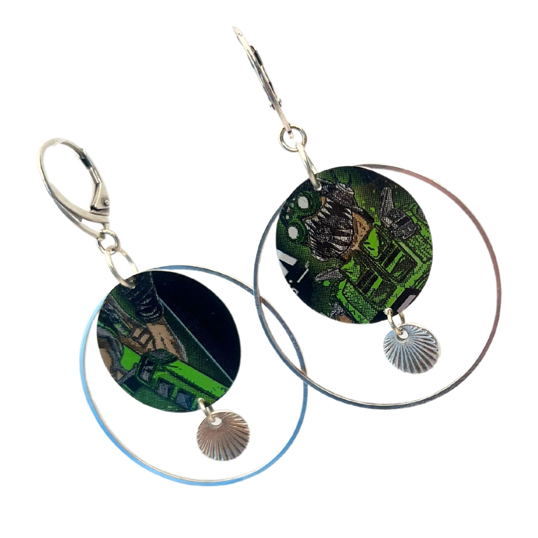 Boucles oreilles Geek en canette upcyclée écoresponsable Jeu vidéo version créole issue d’une canette de Monster.