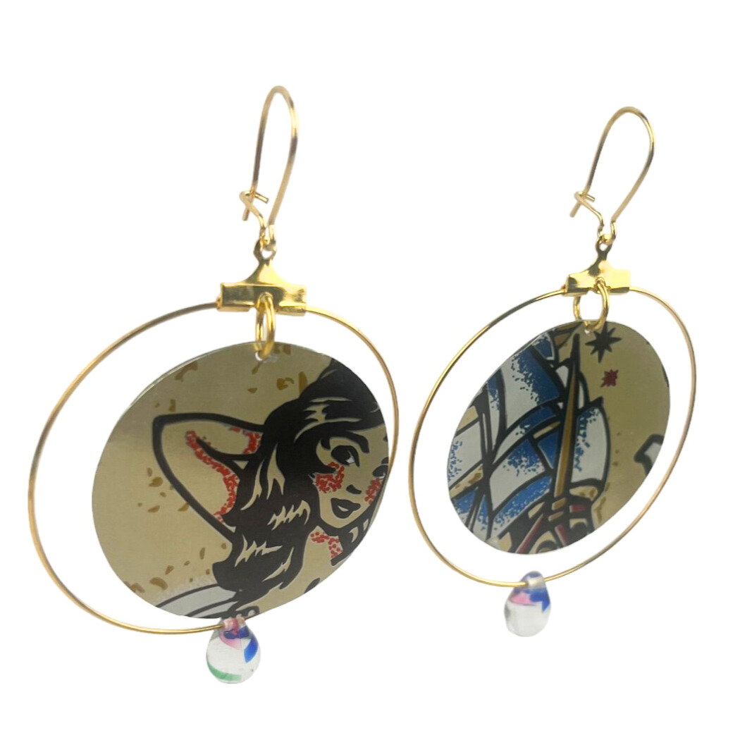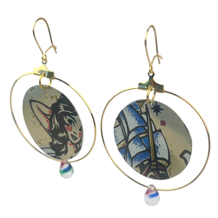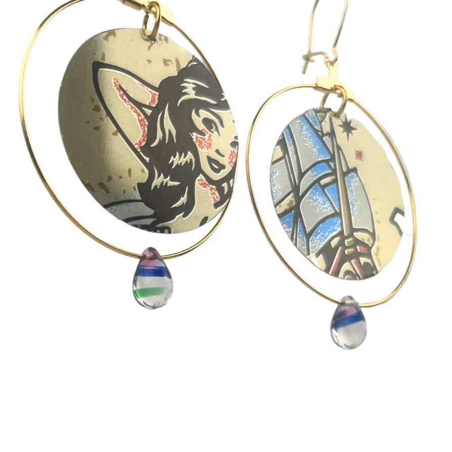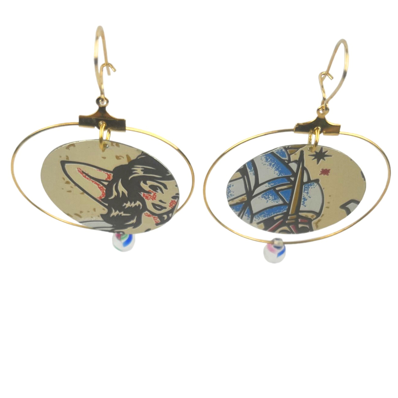 Boucles d’oreilles en canette upcyclée écoresponsable Rockab version créole.