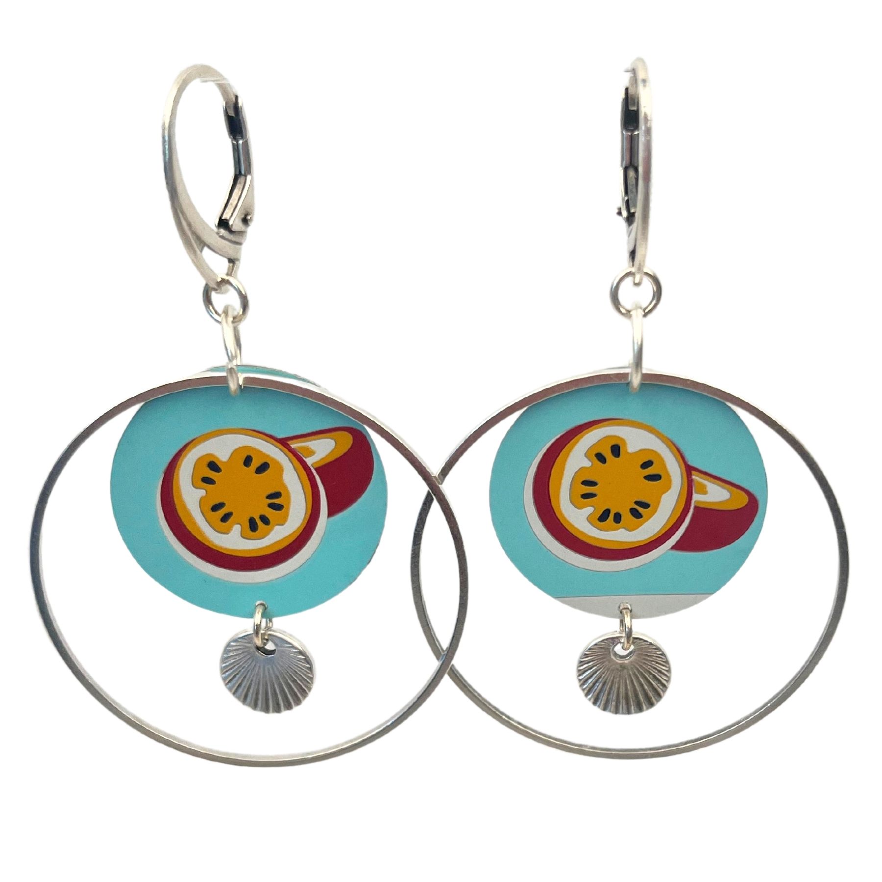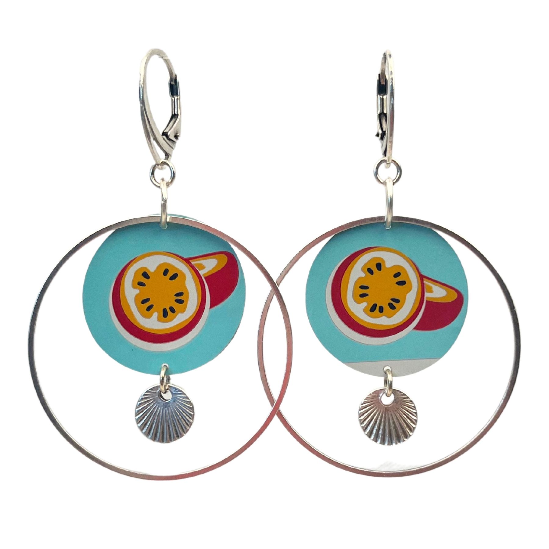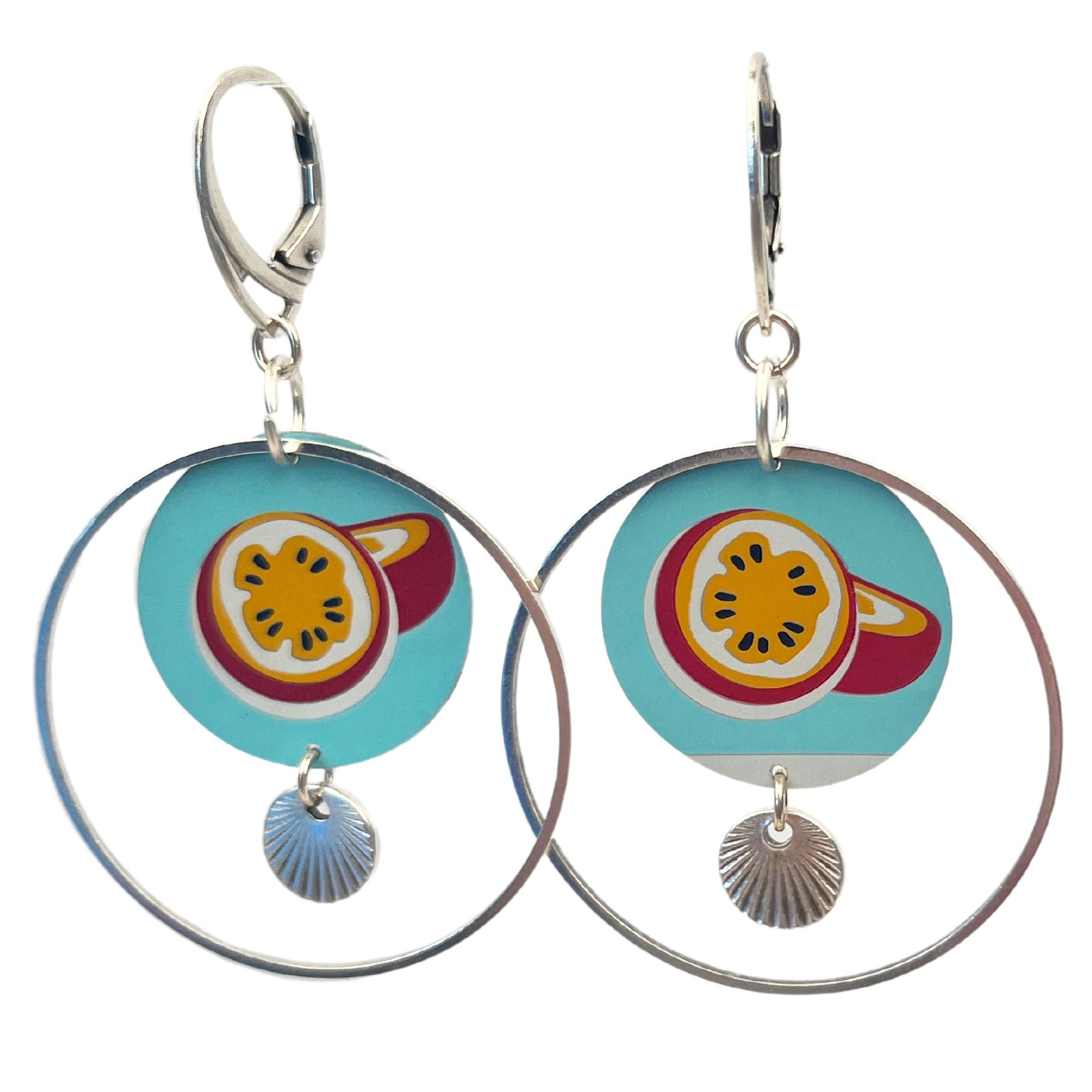 Boucles d’oreilles tropical en canette upcyclée écoresponsable version créole issue d’une canette de jus de fruit