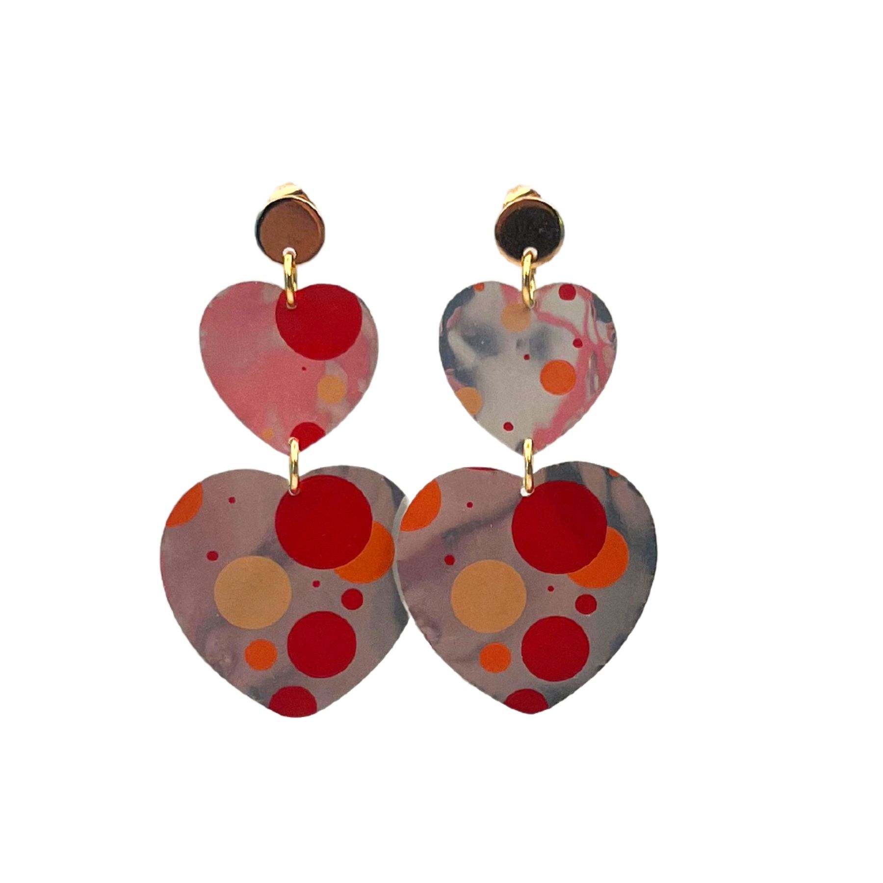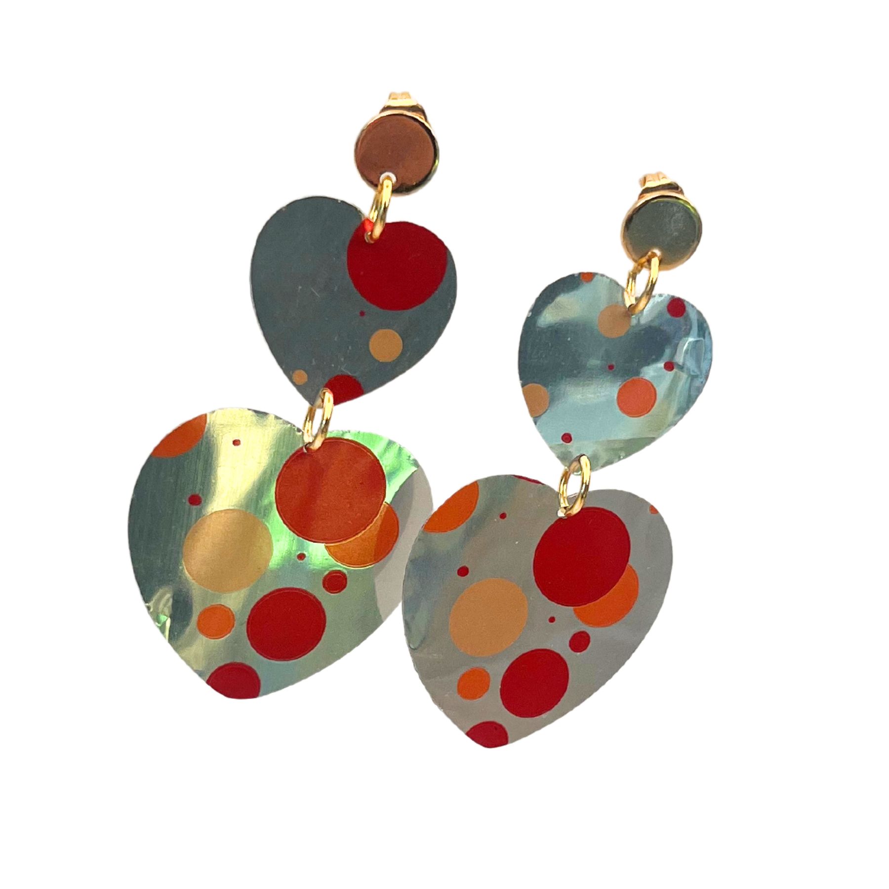 Boucles d’oreilles en canette upcyclée écoresponsable coca version double coeur issues d’une canette de coca ligth.