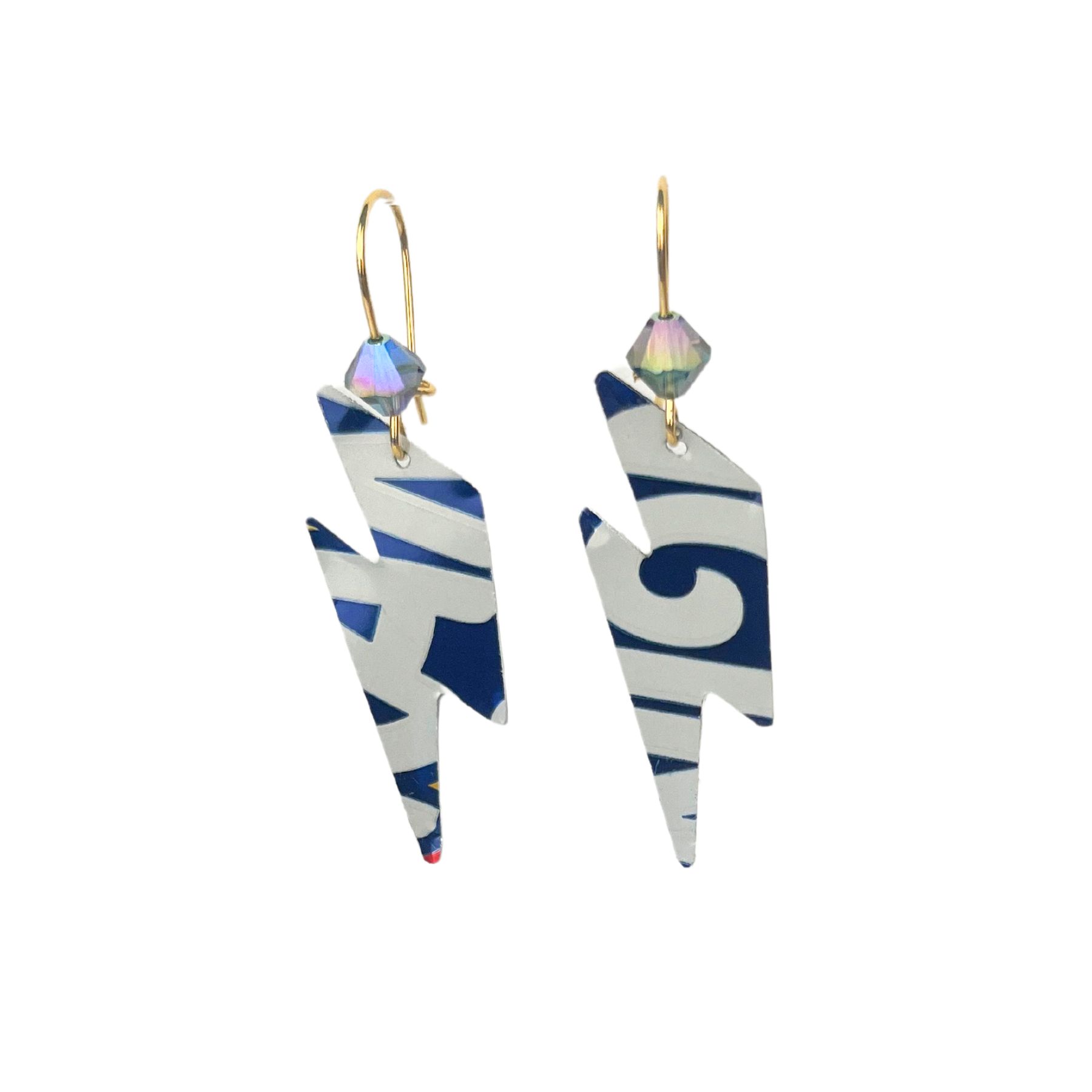 Boucles d’oreilles éclair en canette upcyclée : une touche d’originalité ajoutée à la beauté d’un design PopCulture ornée d’une perle en cristal.
