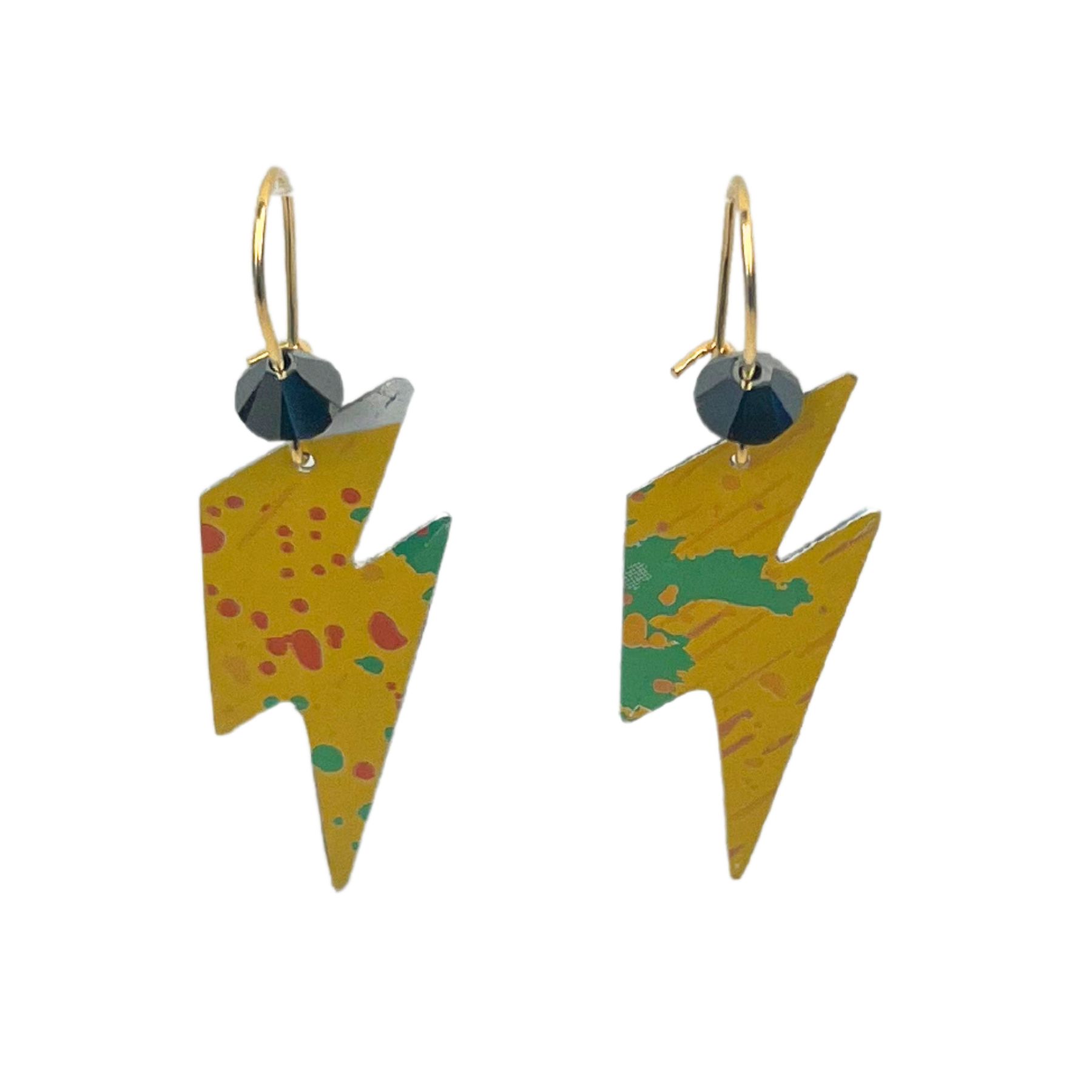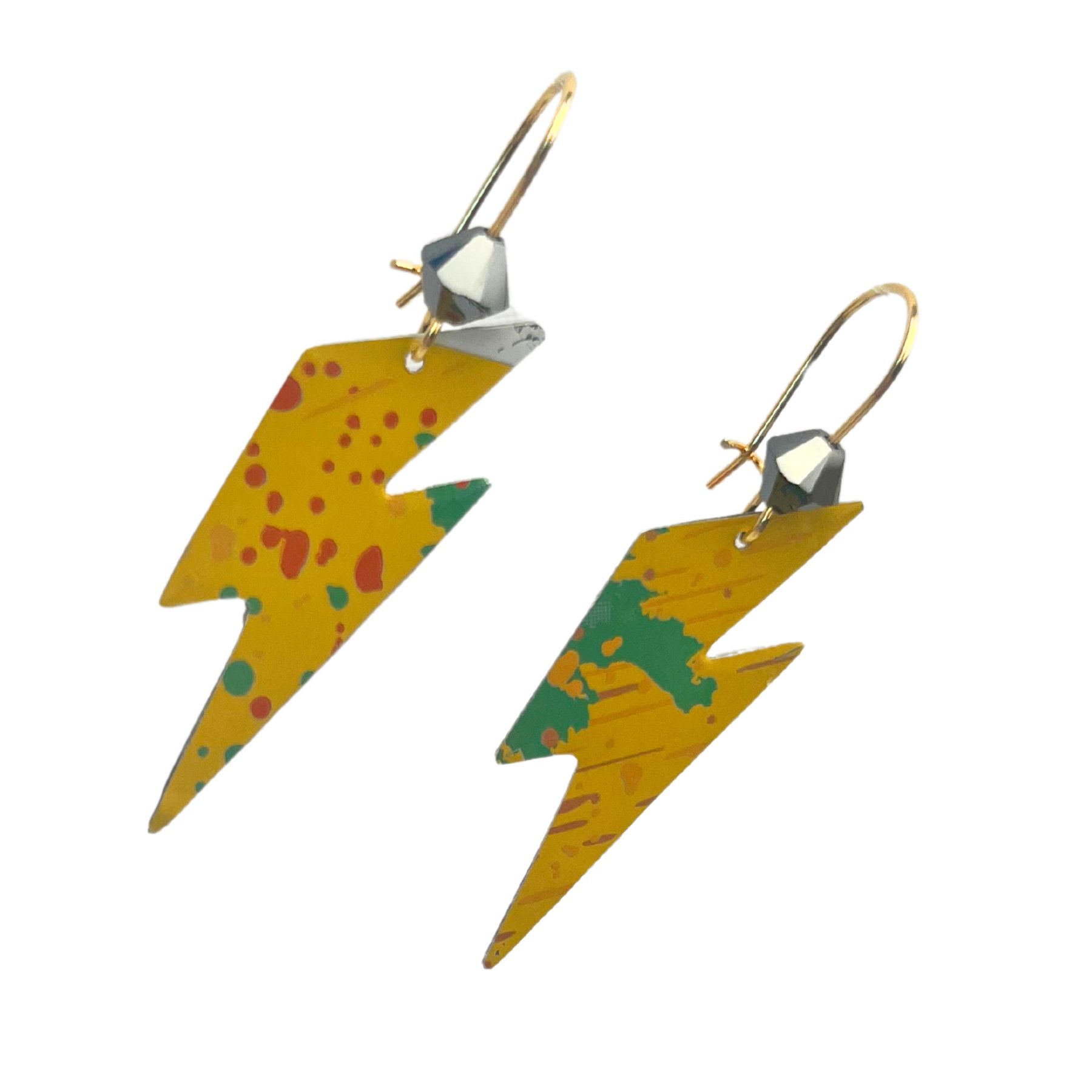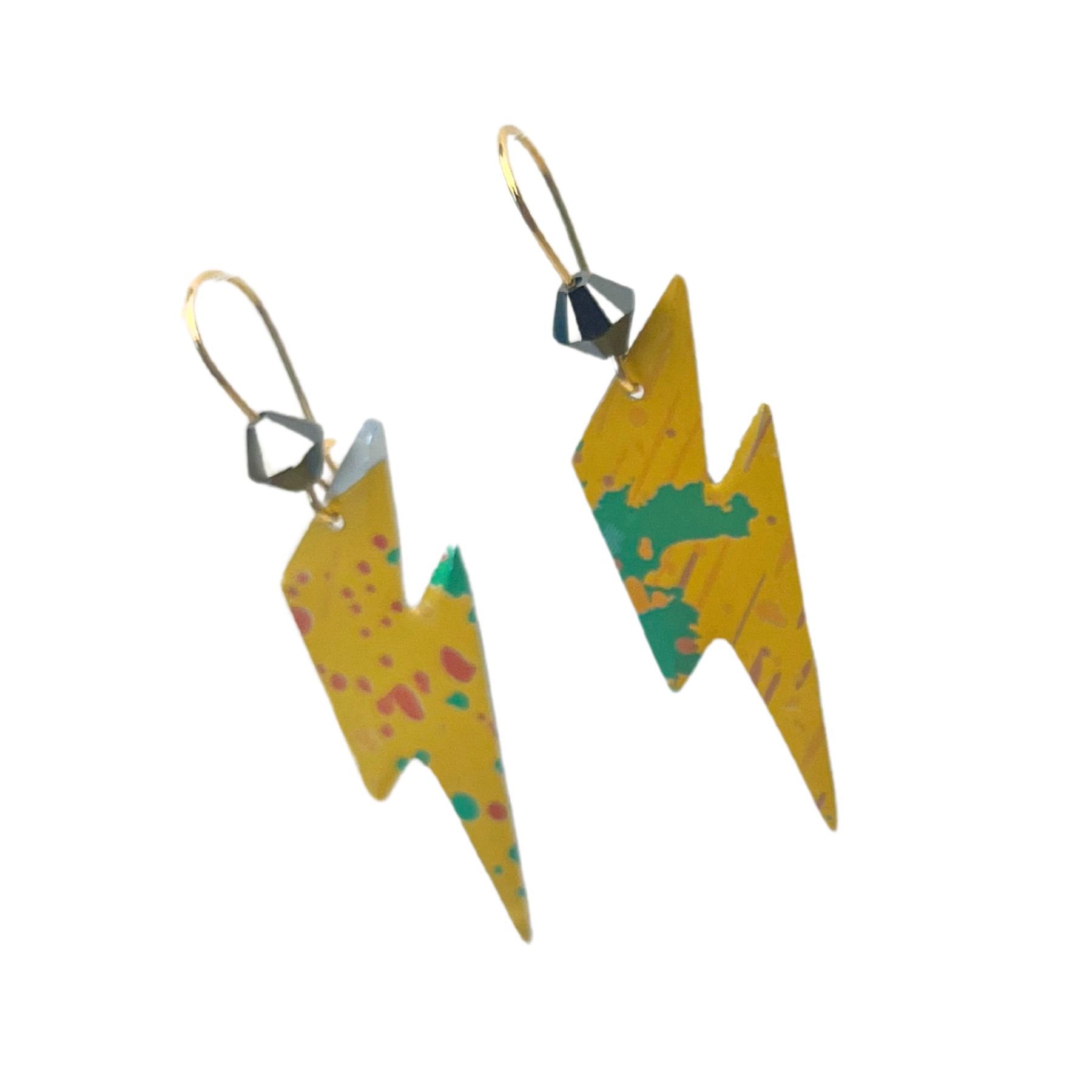 Boucles d’oreilles éclair en canette upcyclée écoresponsable Pop version éclair issues d’une canette de Desperados.
