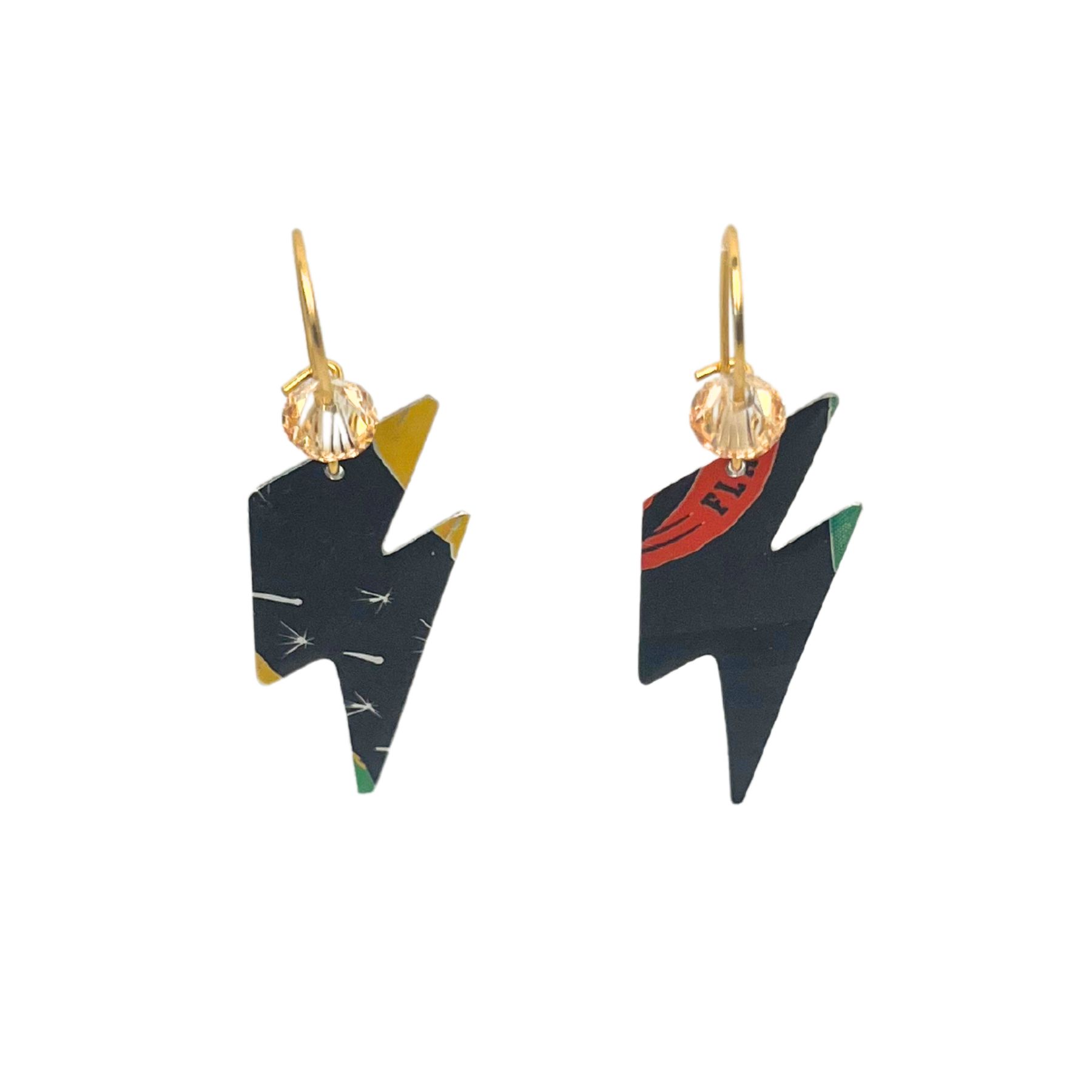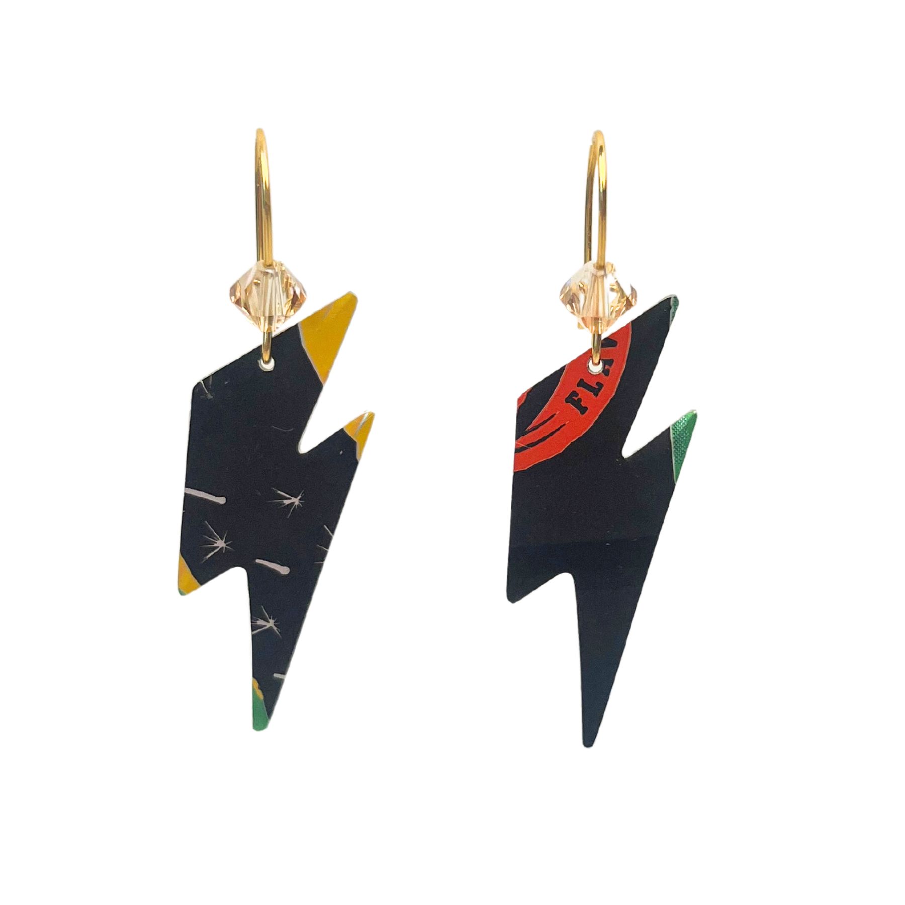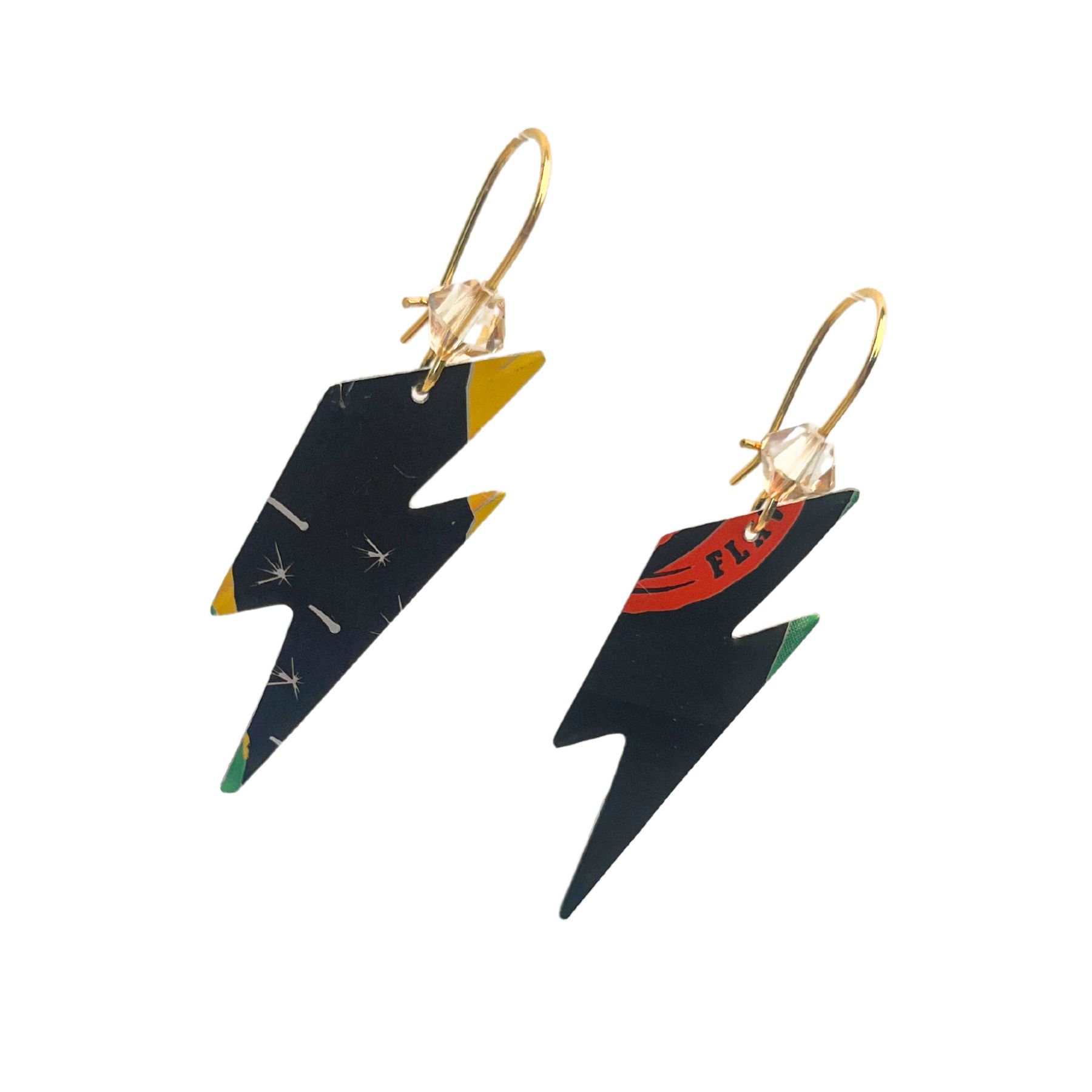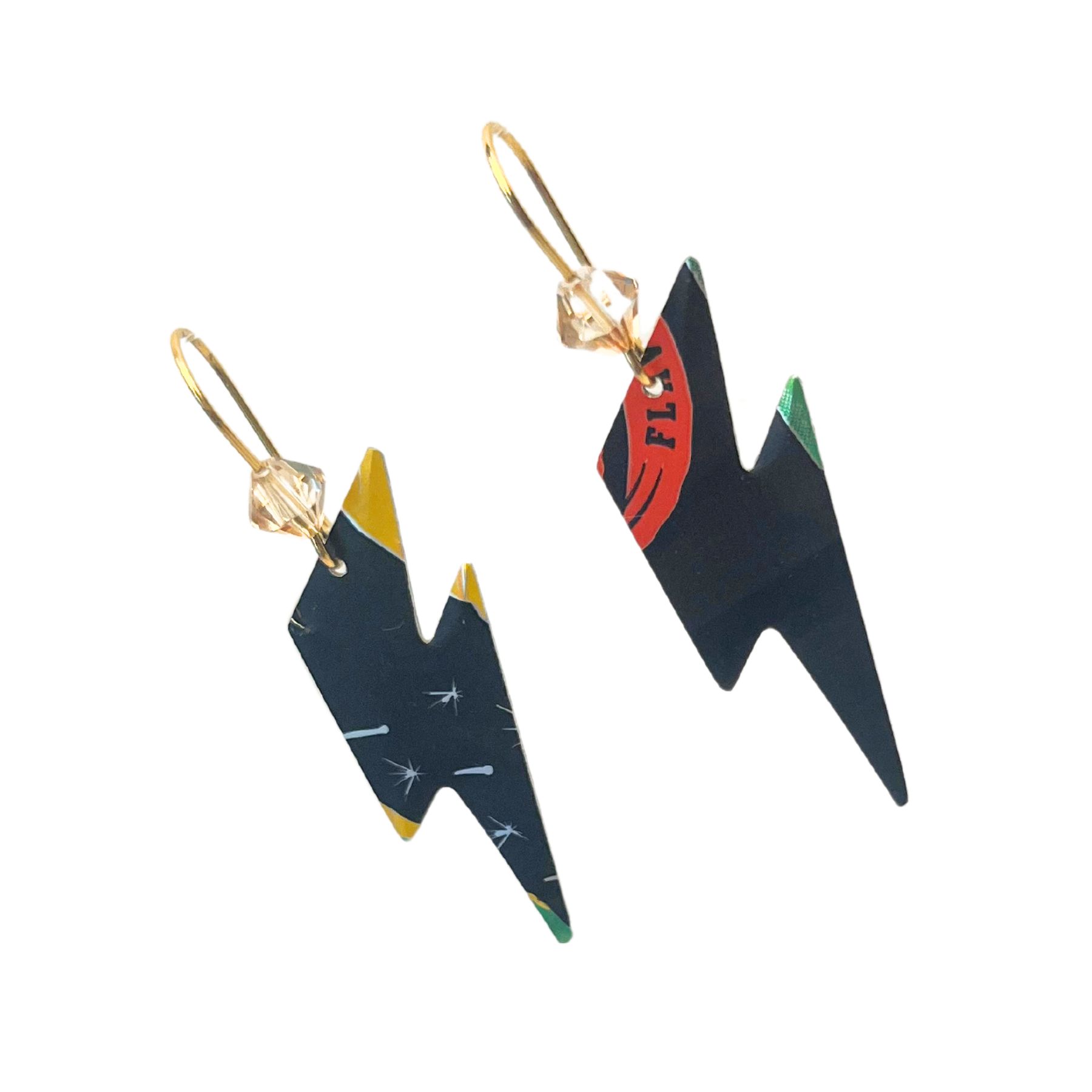 Boucles oreilles éclair despe canette upcyclée écoresponsable Pop issues d’une canette de Desperados.