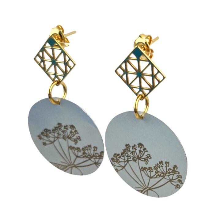 Boucles d’oreilles en canette upcyclée écoresponsable Fleur de houblon version clous d’oreilles.