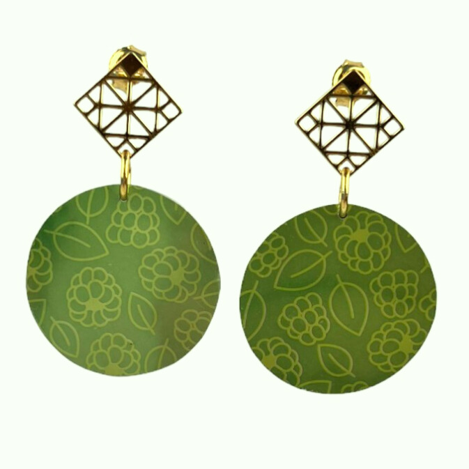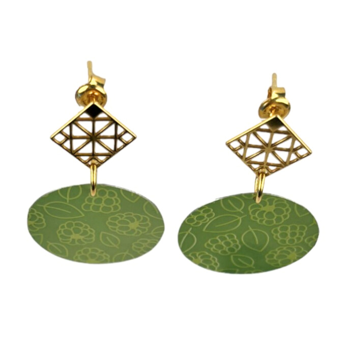 Boucles d’oreilles en canette upcyclée écoresponsable Framboise version clous d’oreilles.