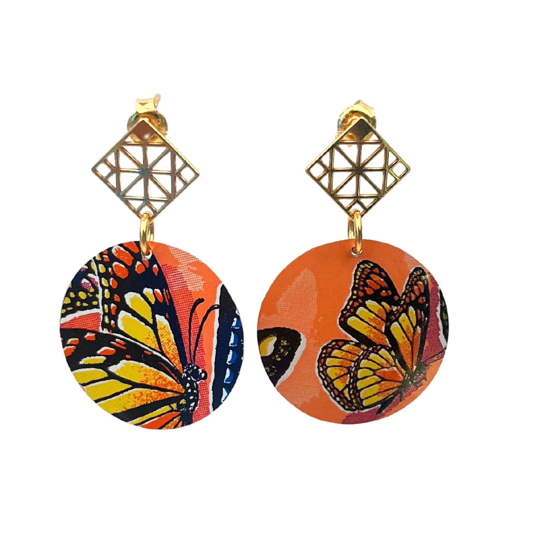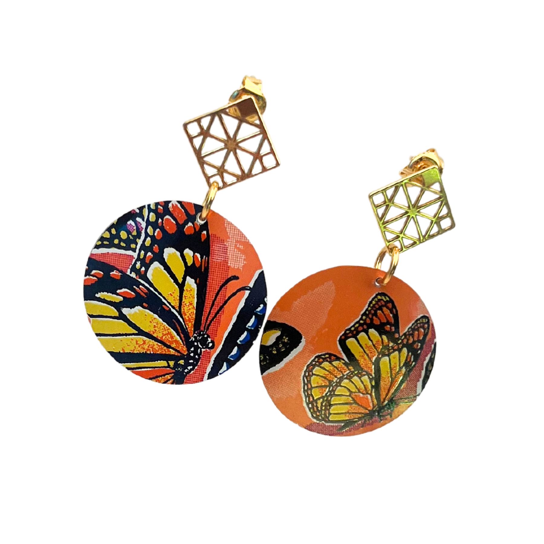 Boucles d’oreilles en canette upcyclée écoresponsable Papillon version clous d’oreilles issue d’une canette Monster.