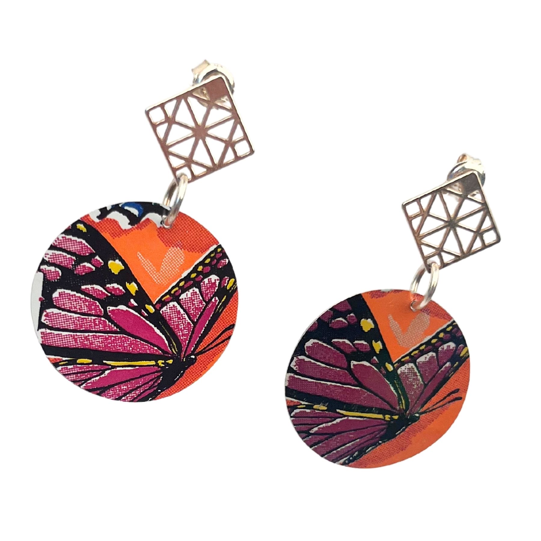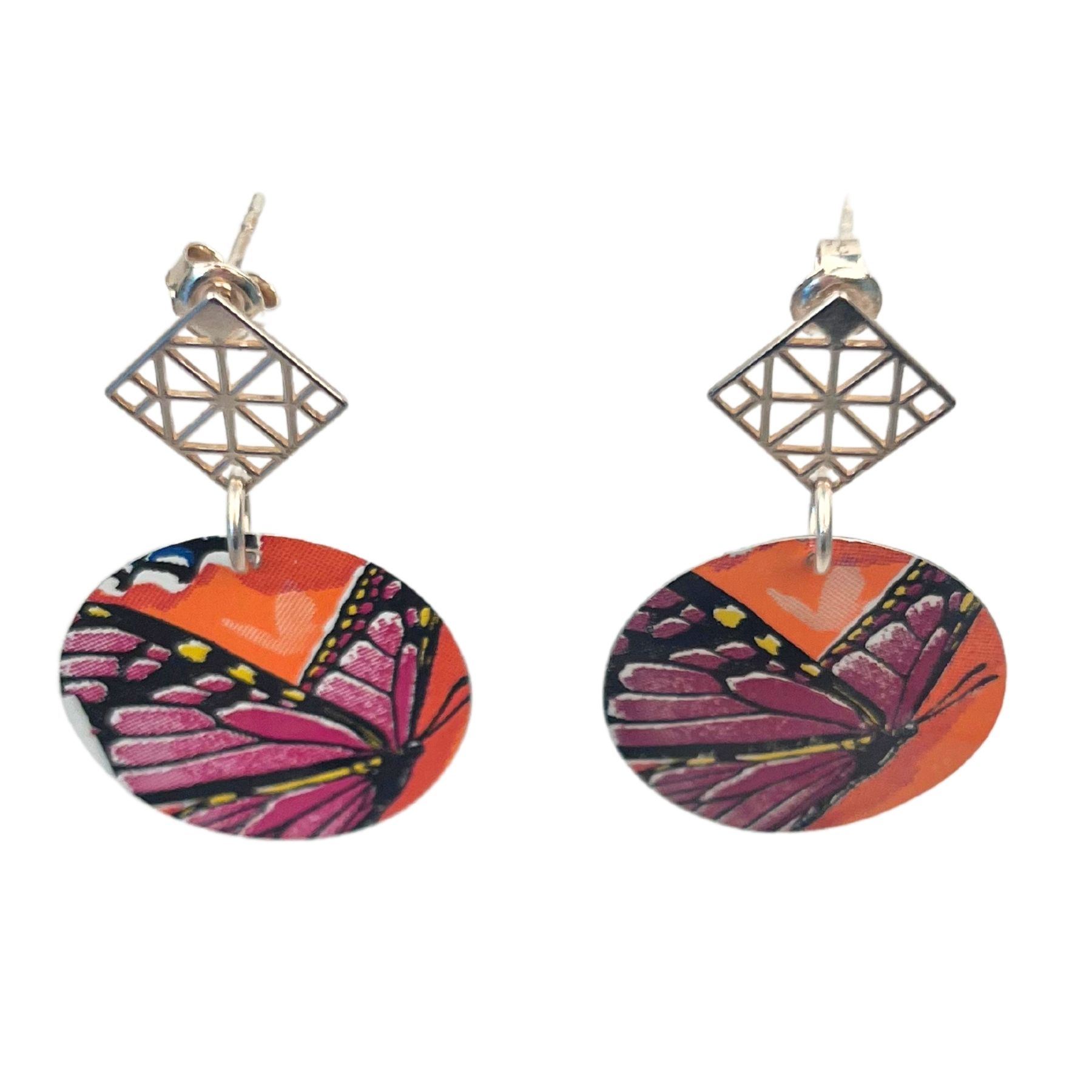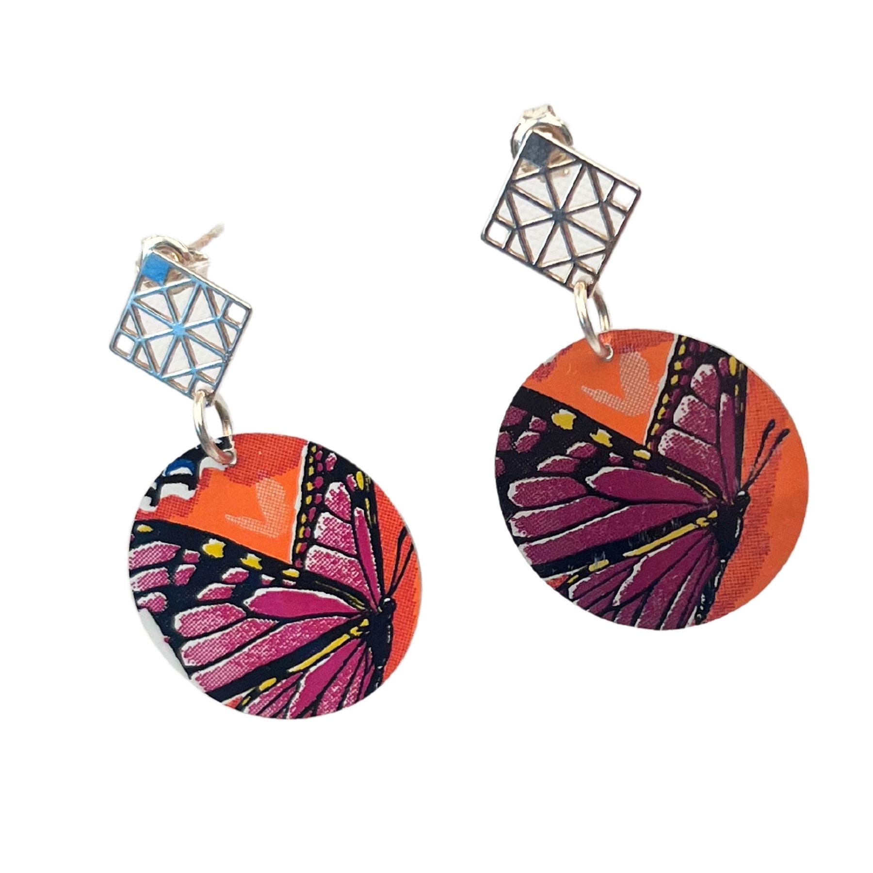 Boucles d’oreilles en canette upcyclée écoresponsable Papillon version clous d’oreilles issue d’une canette Monster.