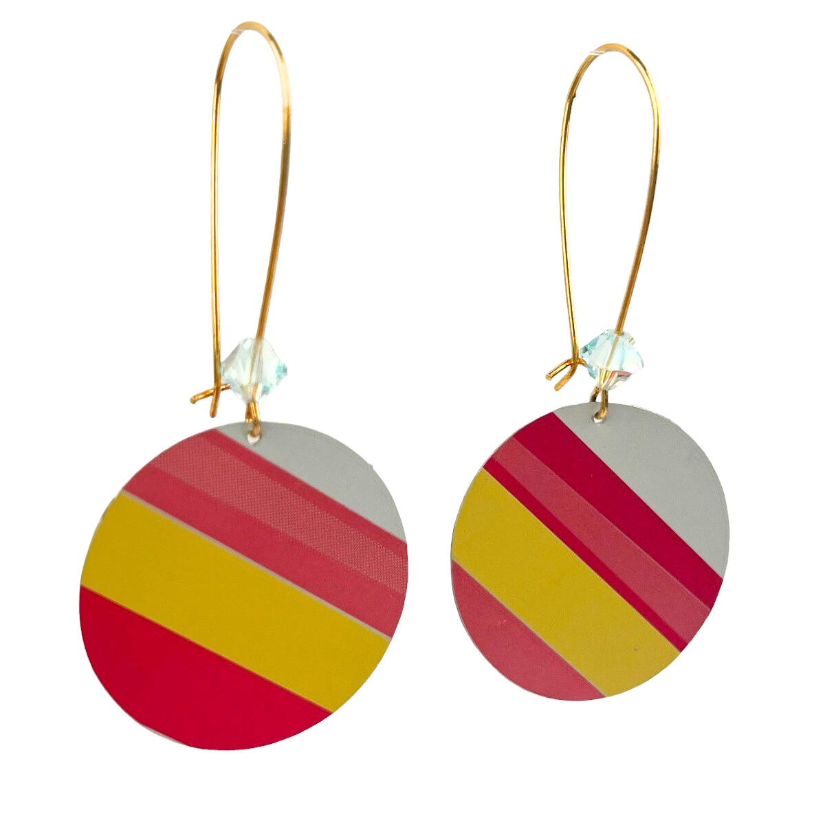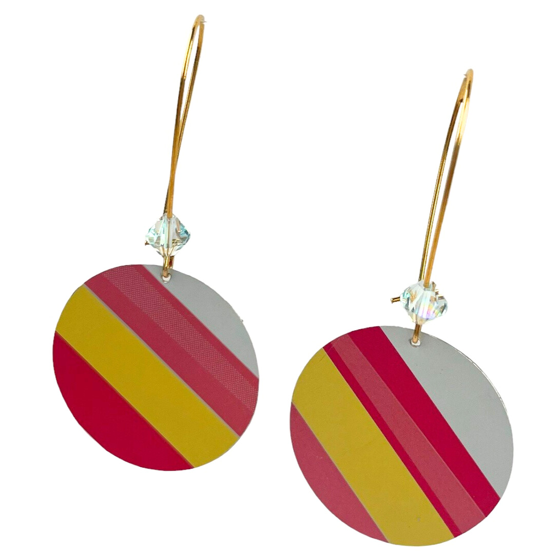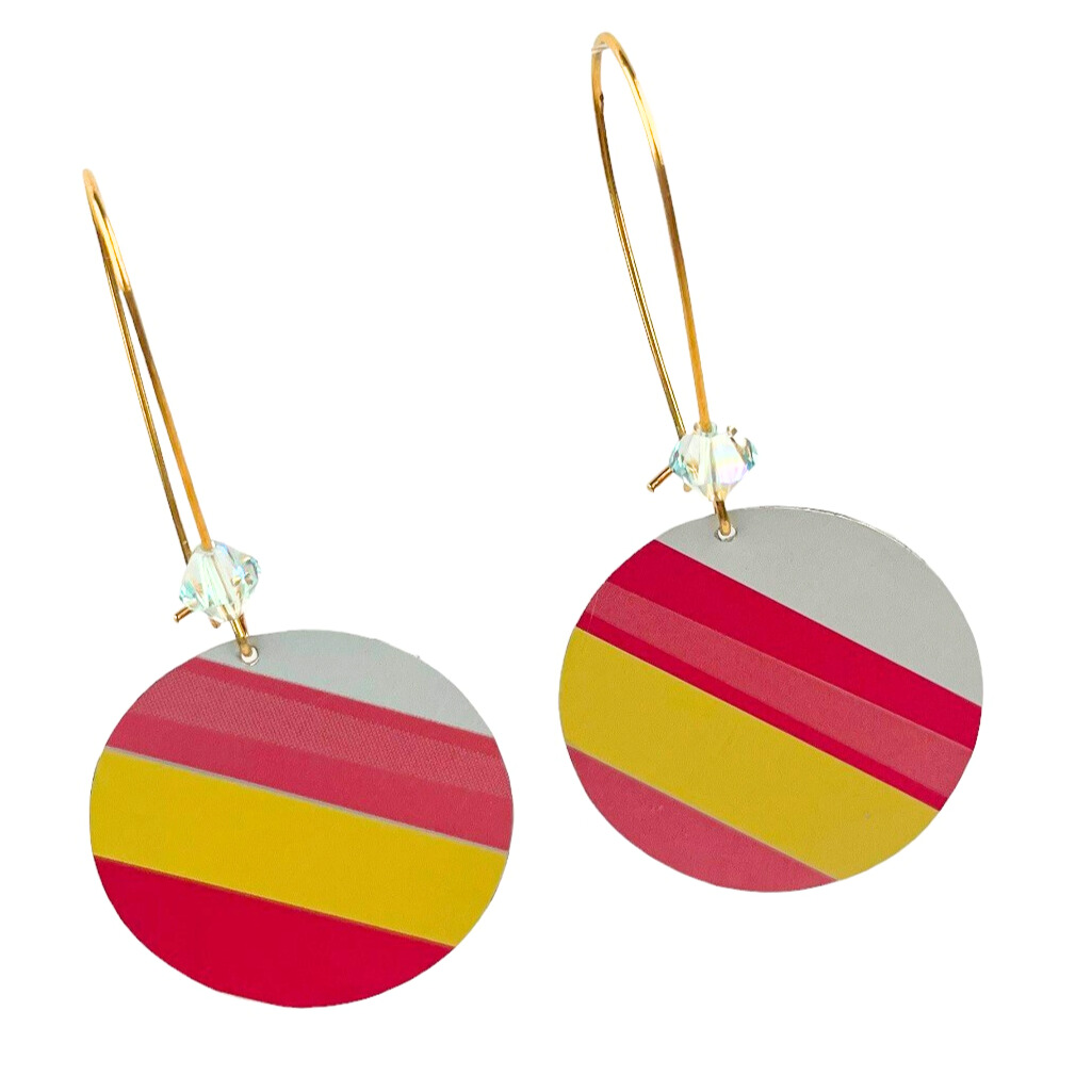 Boucles d’oreilles en canette upcyclée écoresponsable Acidulée version pendantes.