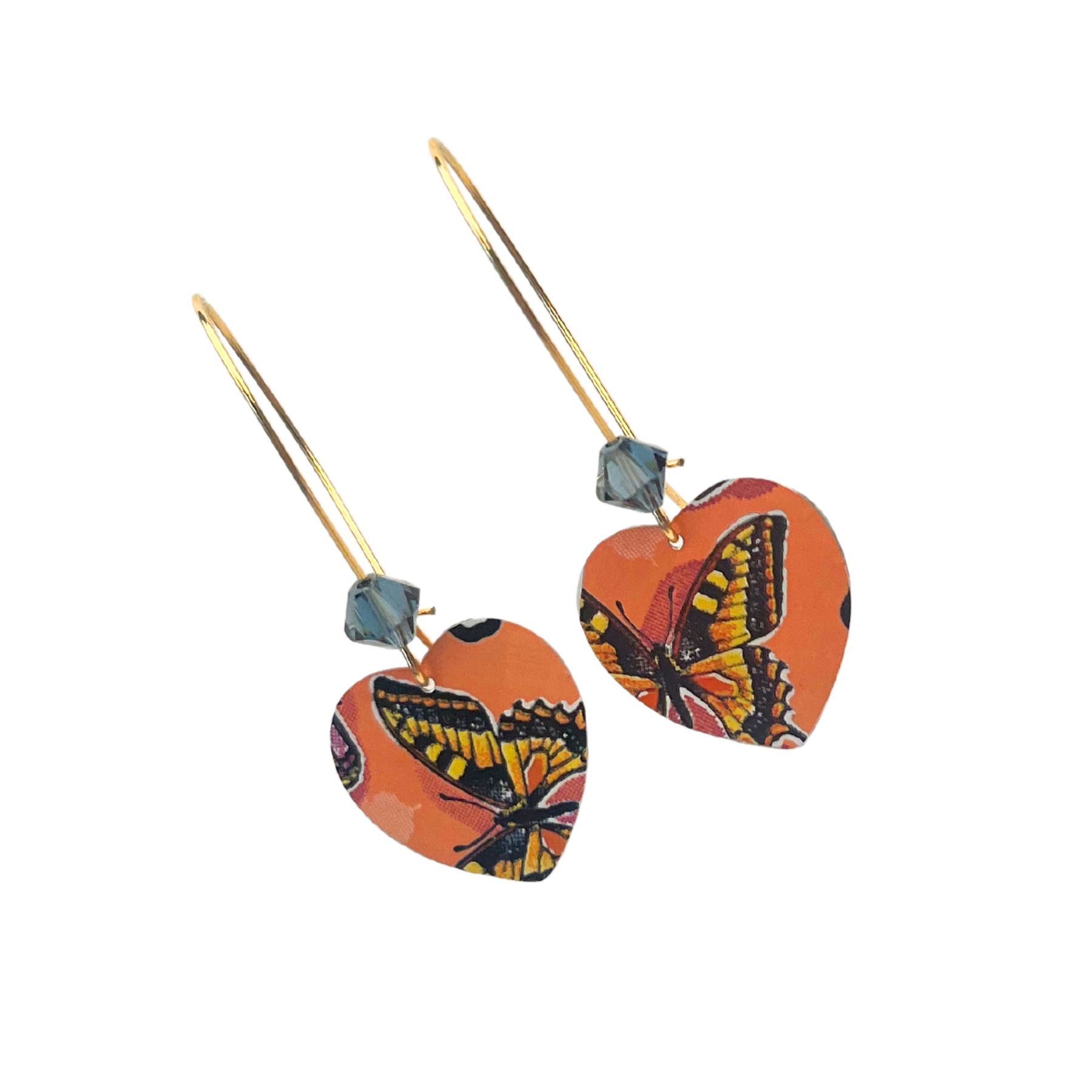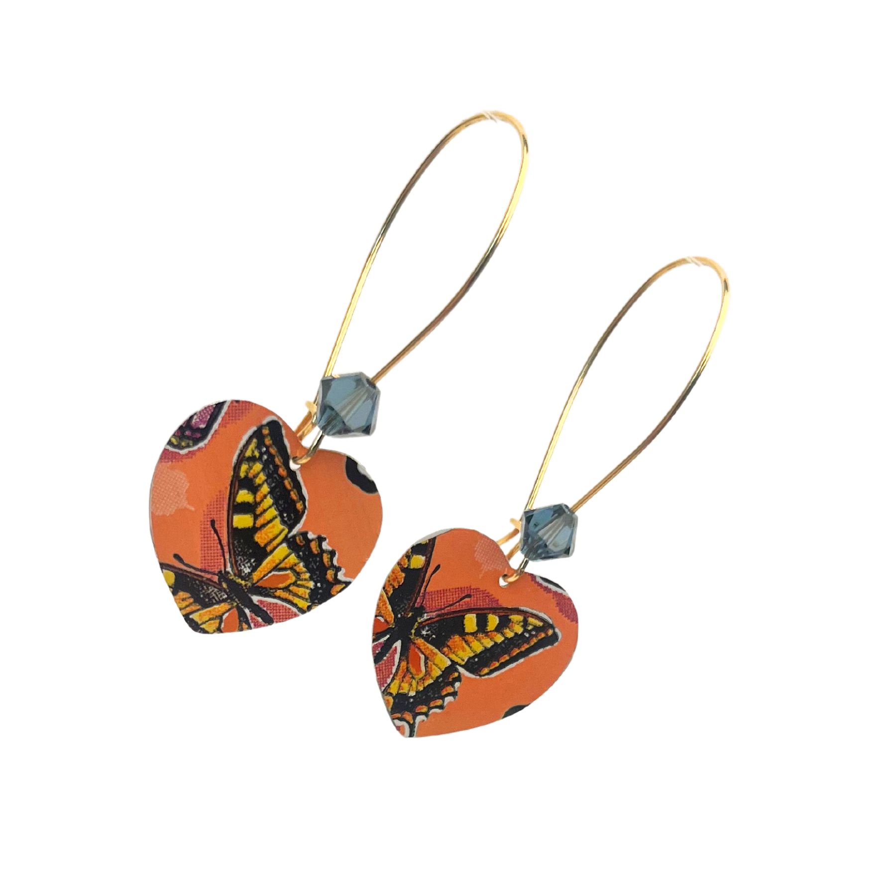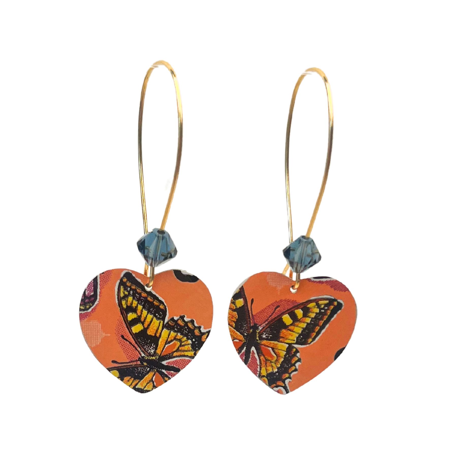 Boucles d’oreilles coeur papillon en canette upcyclée : une touche d’originalité ajoutée à la beauté d’un design printanier ornée d’une délicate perle Swarovski.