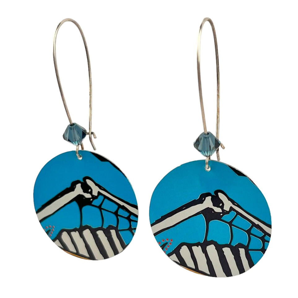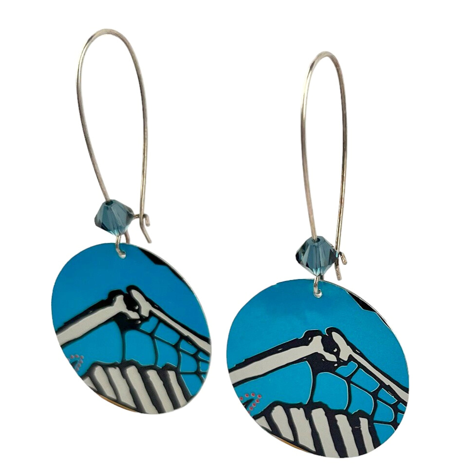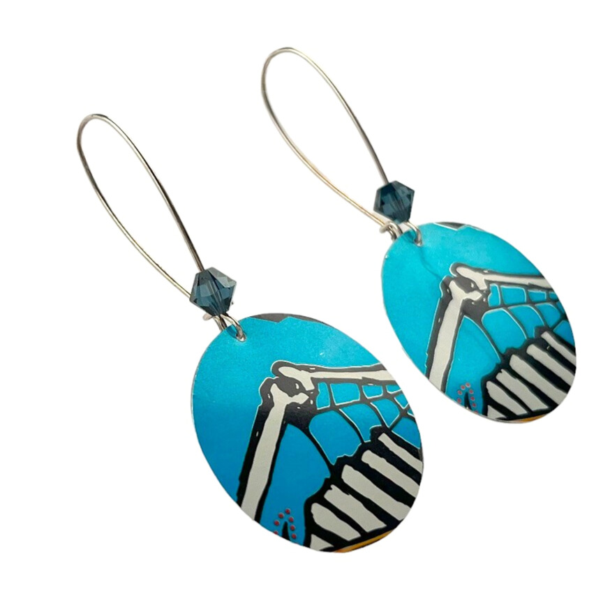 Boucles d’oreilles en canette upcyclée écoresponsable Dia de los muertos version pendantes.
