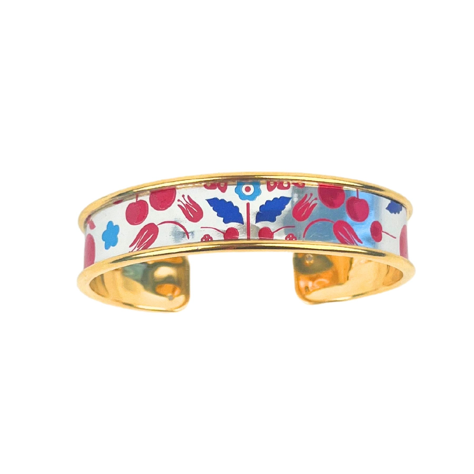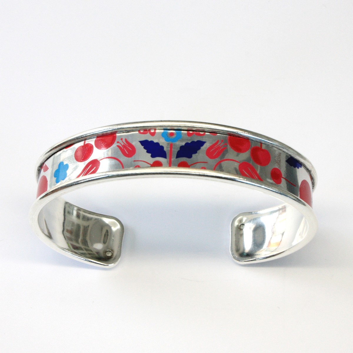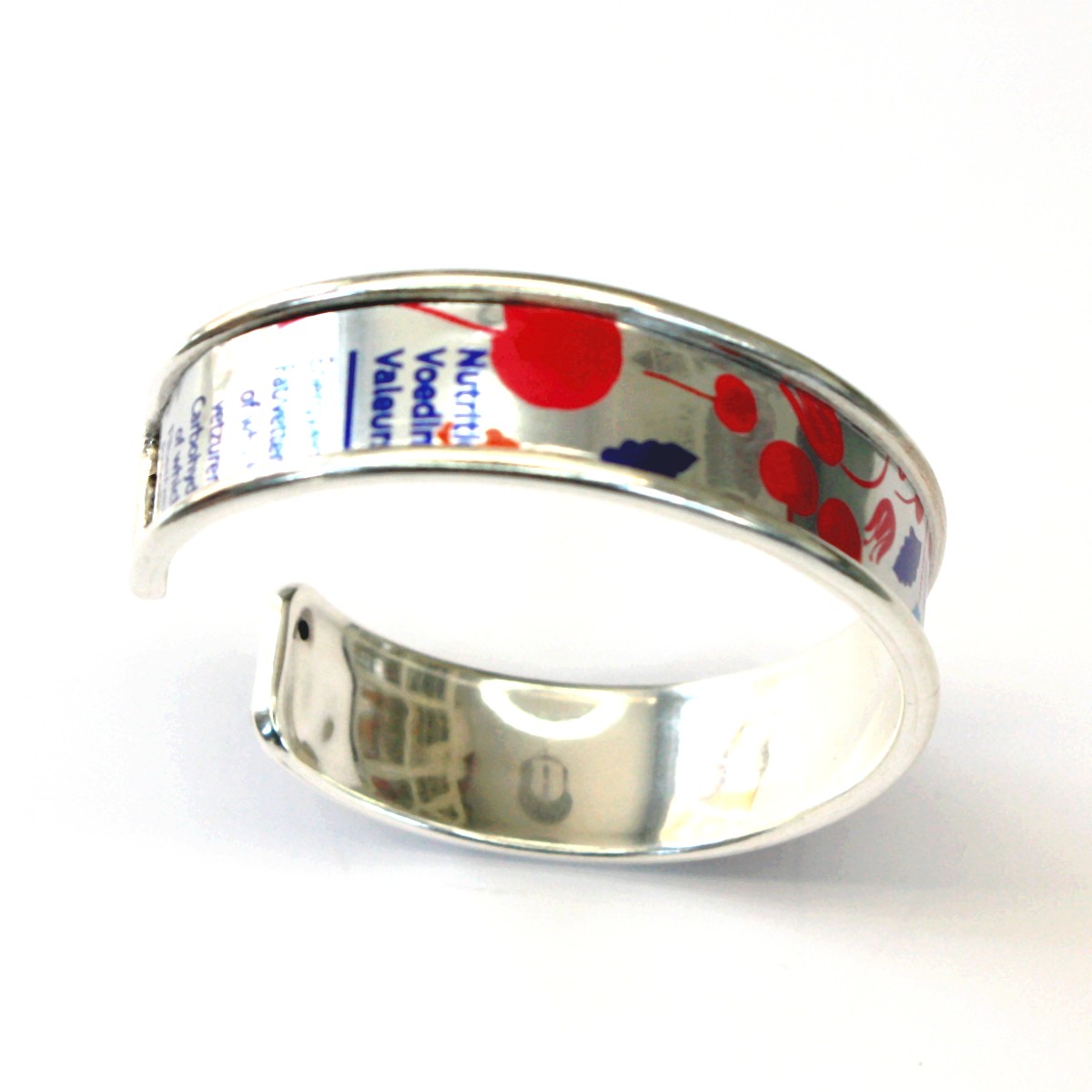 Matières: La manchette Cherry en canette upcyclée est composée d’une canette collée sur un support en laiton recouvert d’une couche d’argent pur ou doré à l’or fin 24 carats suivant la finition choisie, garantit sans allergènes, le support est fabriqué en Europe (Atelier en Grèce et Italie).