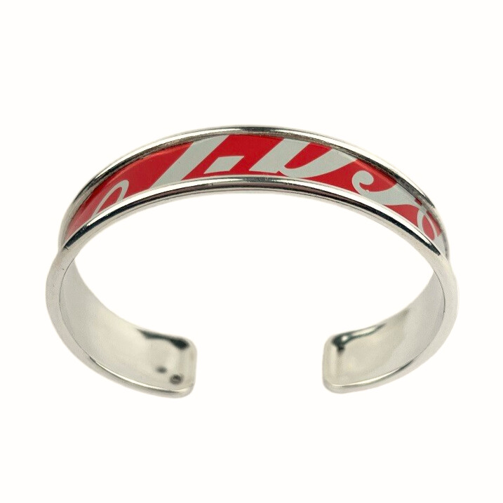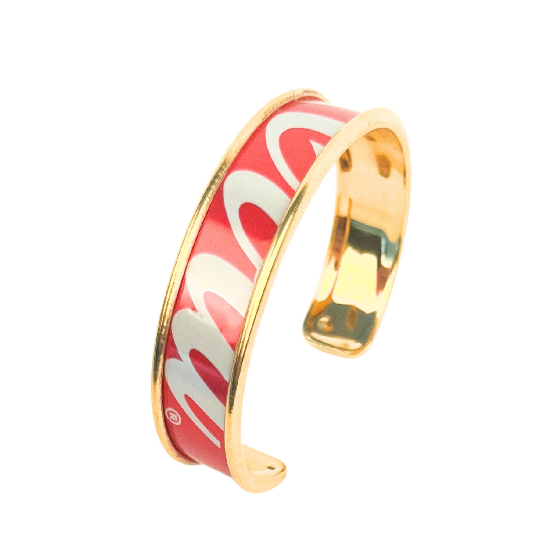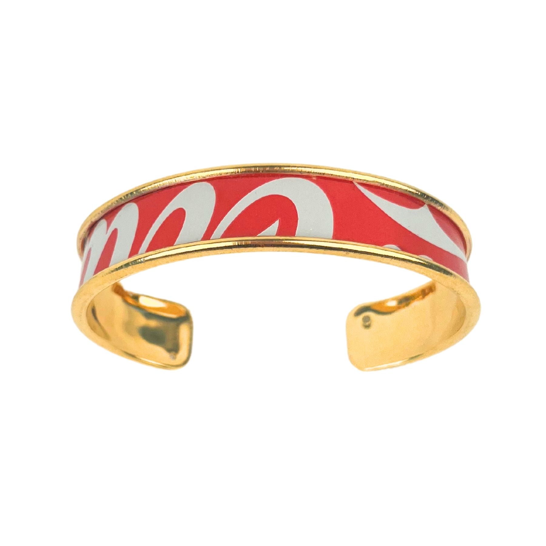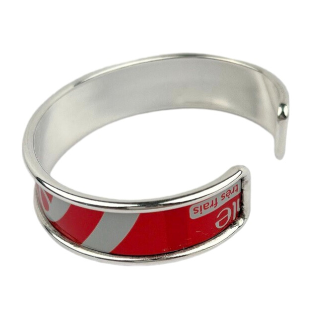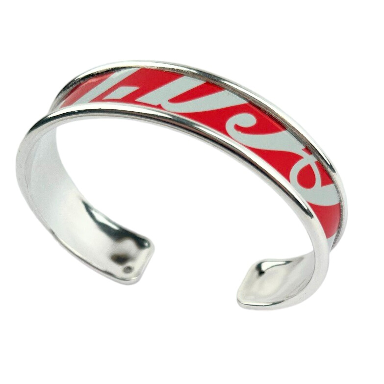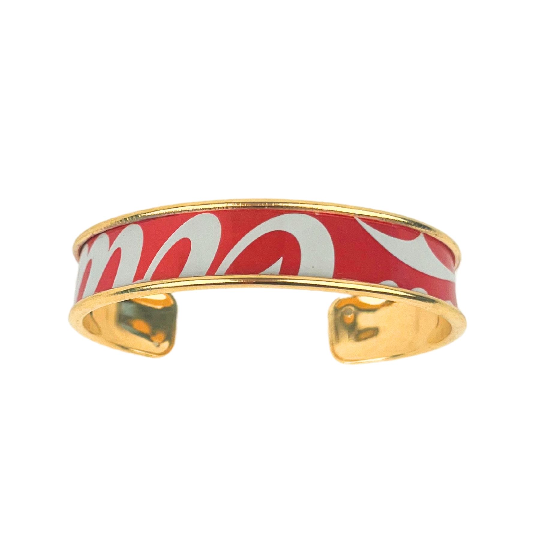 Manchette Cola en canette upcyclée motif blanc sur fond rouge version M issue d’une canette de la marque Coca Cola