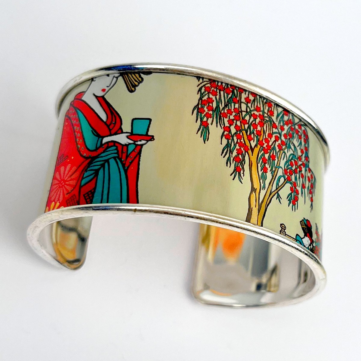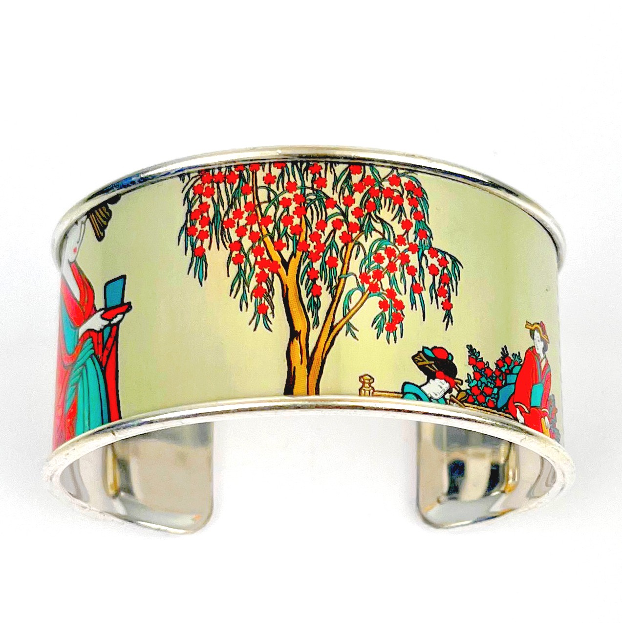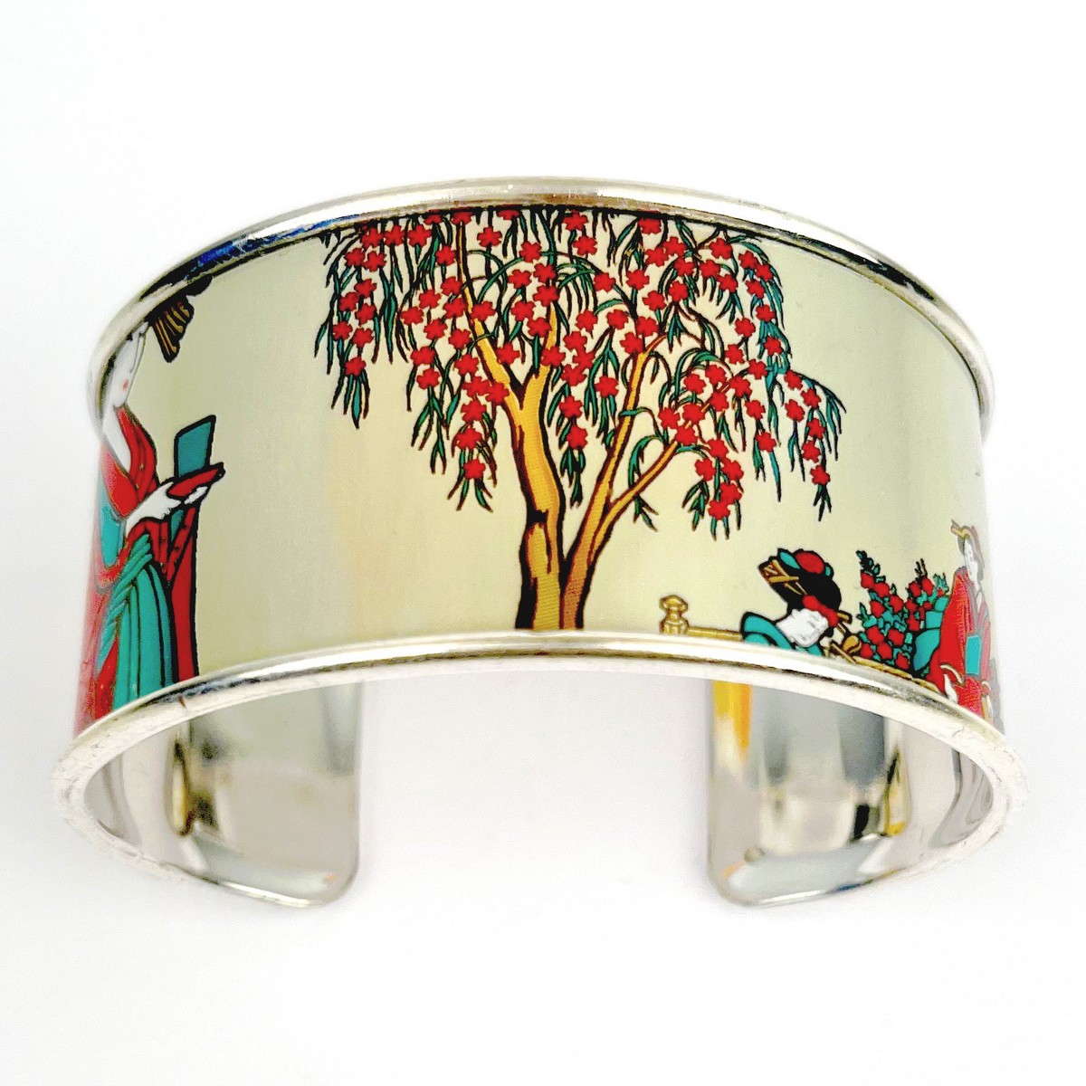 Matières: La manchette fleur de pêcher upcyclée est composée d’une canette collée sur un support en laiton recouvert d’une couche d’or fin 24 carats ou d’argent pur selon la finition choisie et garantit sans allergènes. Le support est fabriqué en Grèce.
