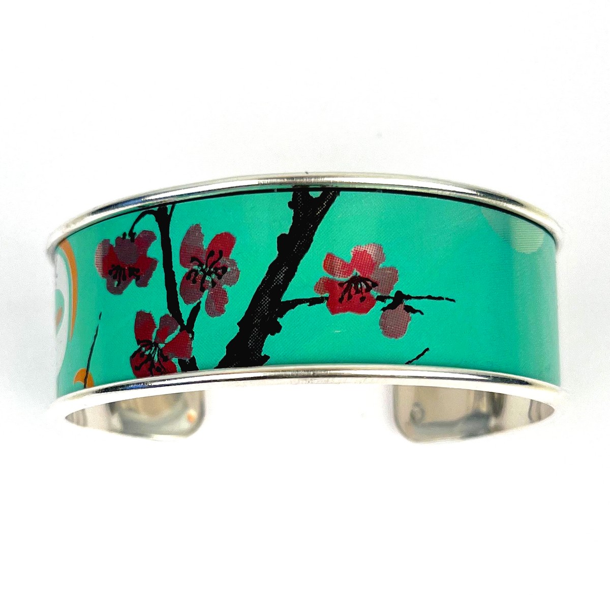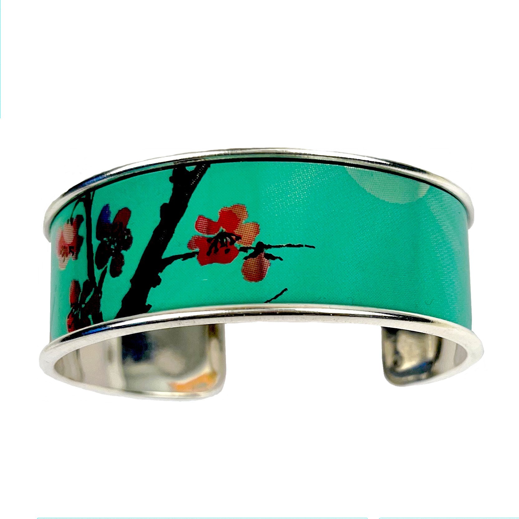 Matières: La manchette fleur de cerisier upcyclée large est composée d’une canette collée sur un support en laiton doré à l’or fin 24 carats ou à l’argent pur garantit sans allergènes, le support est fabriqué en Grèce ou en Italie.
