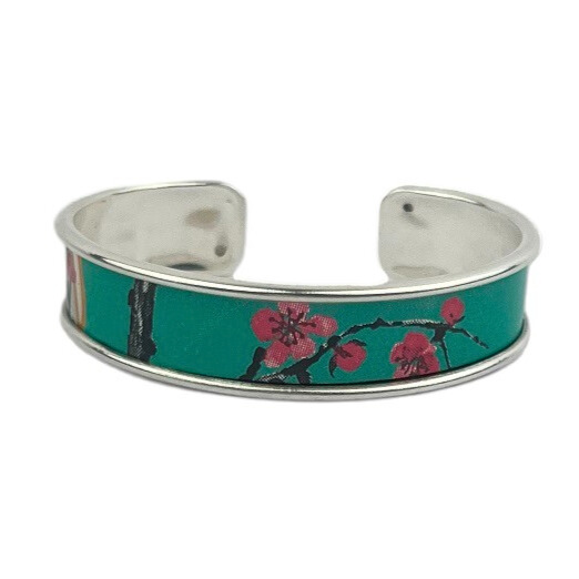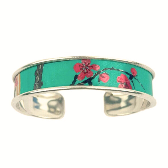 Matières: La manchette fleur de cerisier upcyclée est composée d’une canette collée sur un support en laiton doré à l’or fin 24 carats ou à l’argent pur garantit sans allergènes, le support est fabriqué en Grèce.