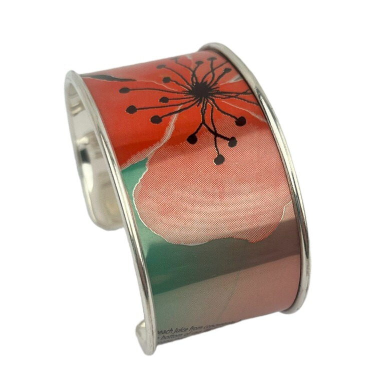 Manchette en canette upcyclée motif fleur de pêcher version XL.