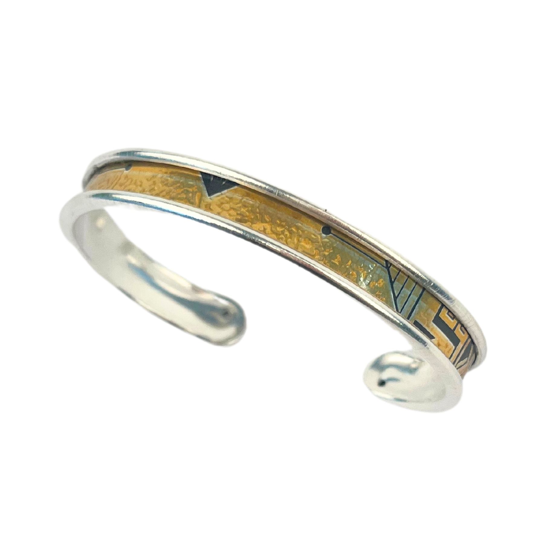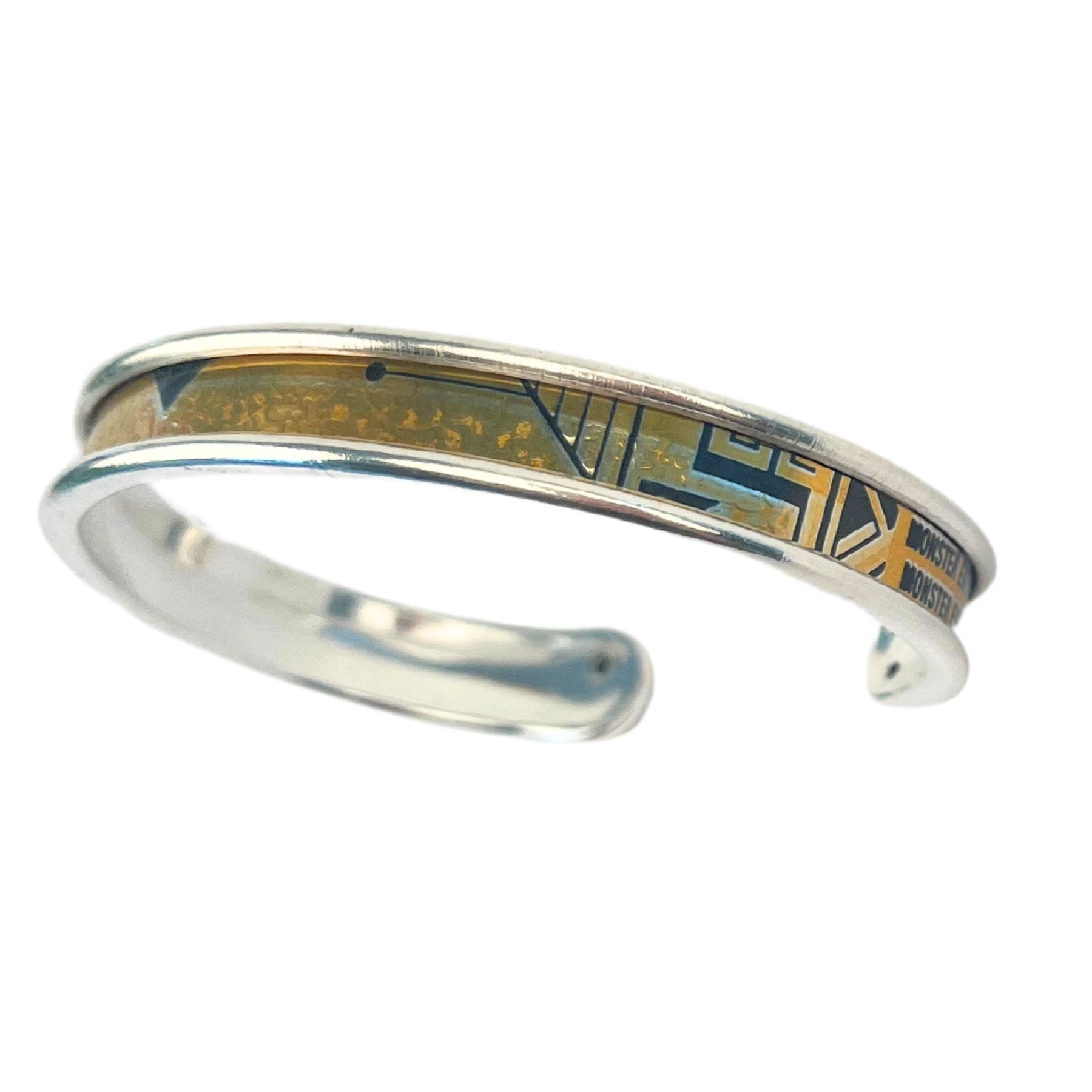 Manchette en canette upcyclée motif géométriques version S issue d’une cannette de Monster Golden.