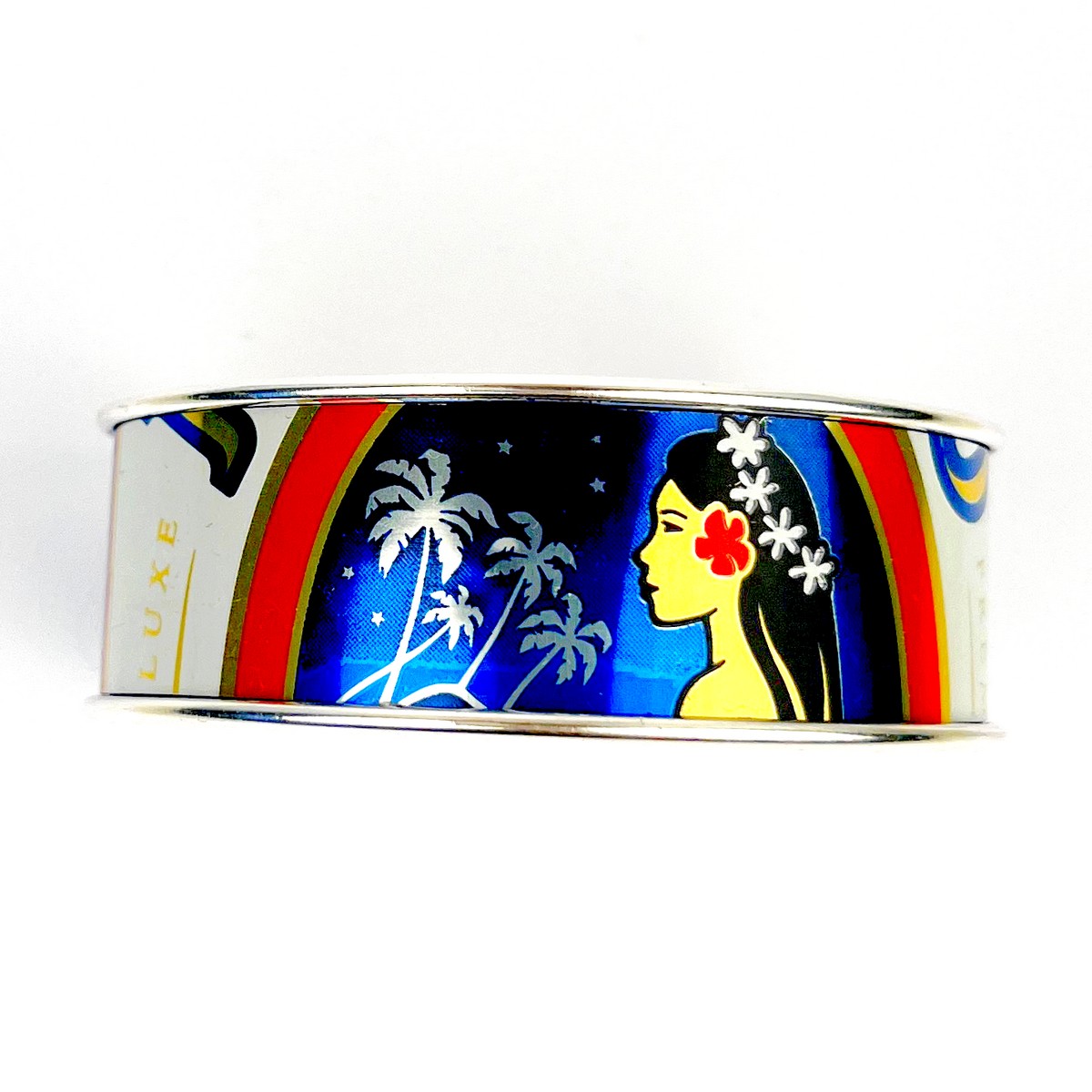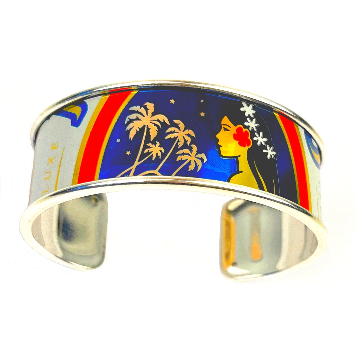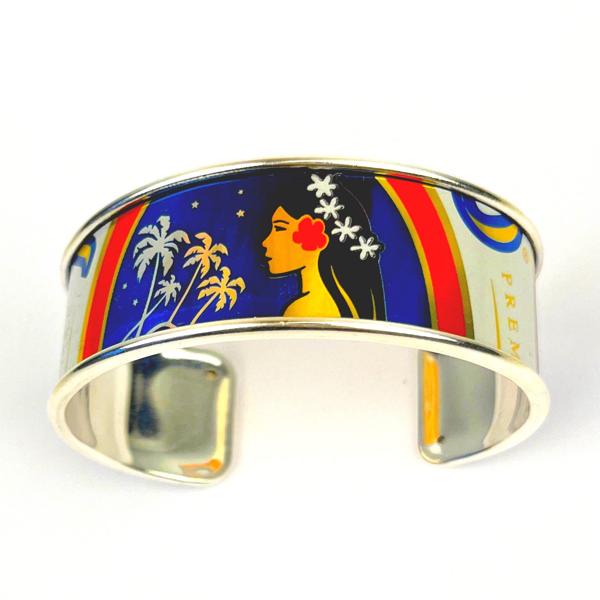 Manchette en canette upcyclée motif Tahitienne version L.